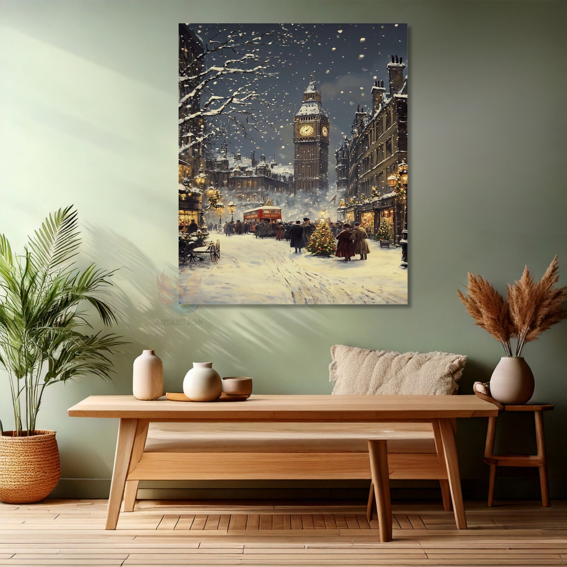 Kanvas Dikey Duvar Tablosu Kanvas Karlı Yeni Yıl Ev Ofis Salon Modern Duvar Tablosu
