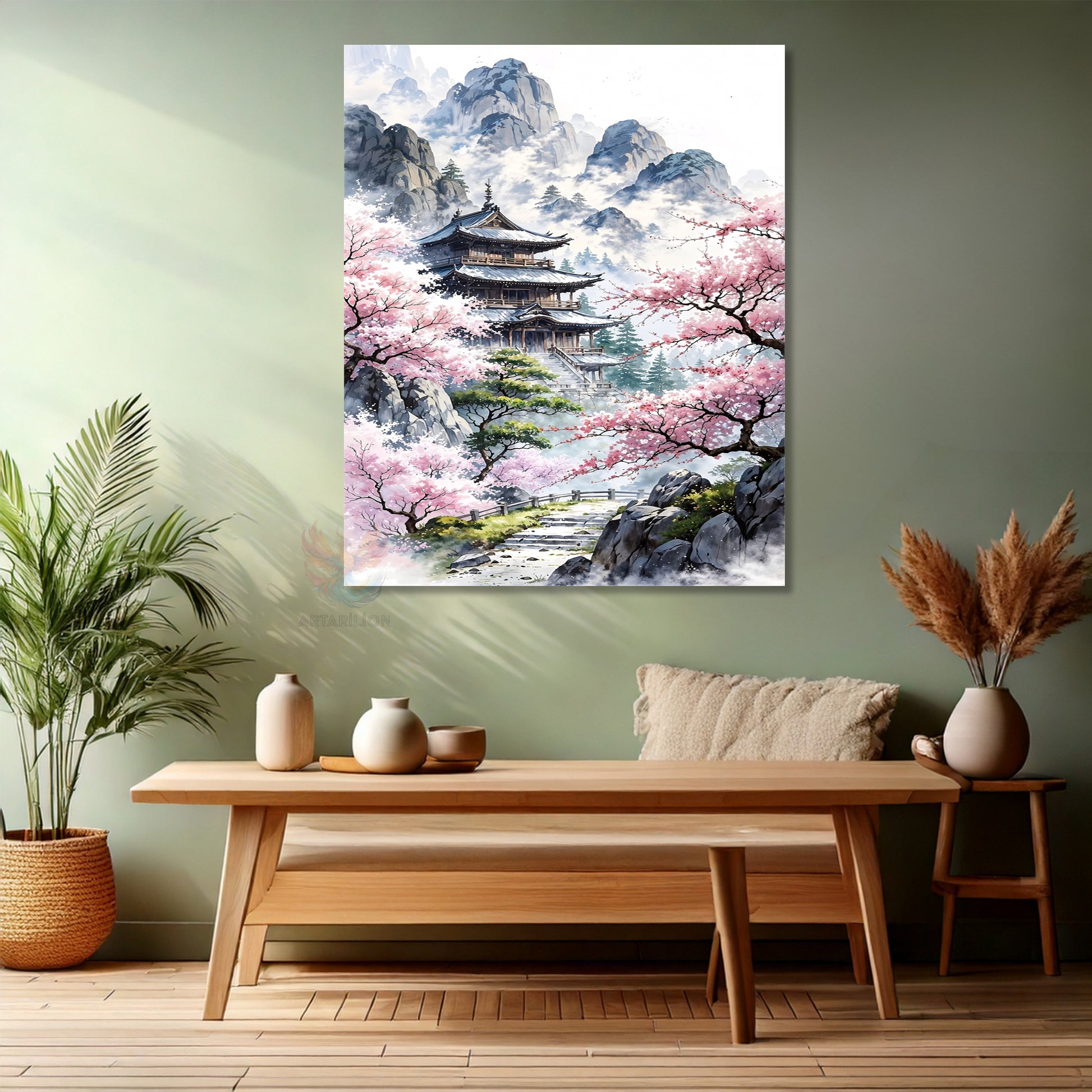 Kanvas Dikey Duvar Tablosu Kanvas Kiraç Çiçekleri ve Tapinak Ev Ofis Salon Modern Duvar Tablosu