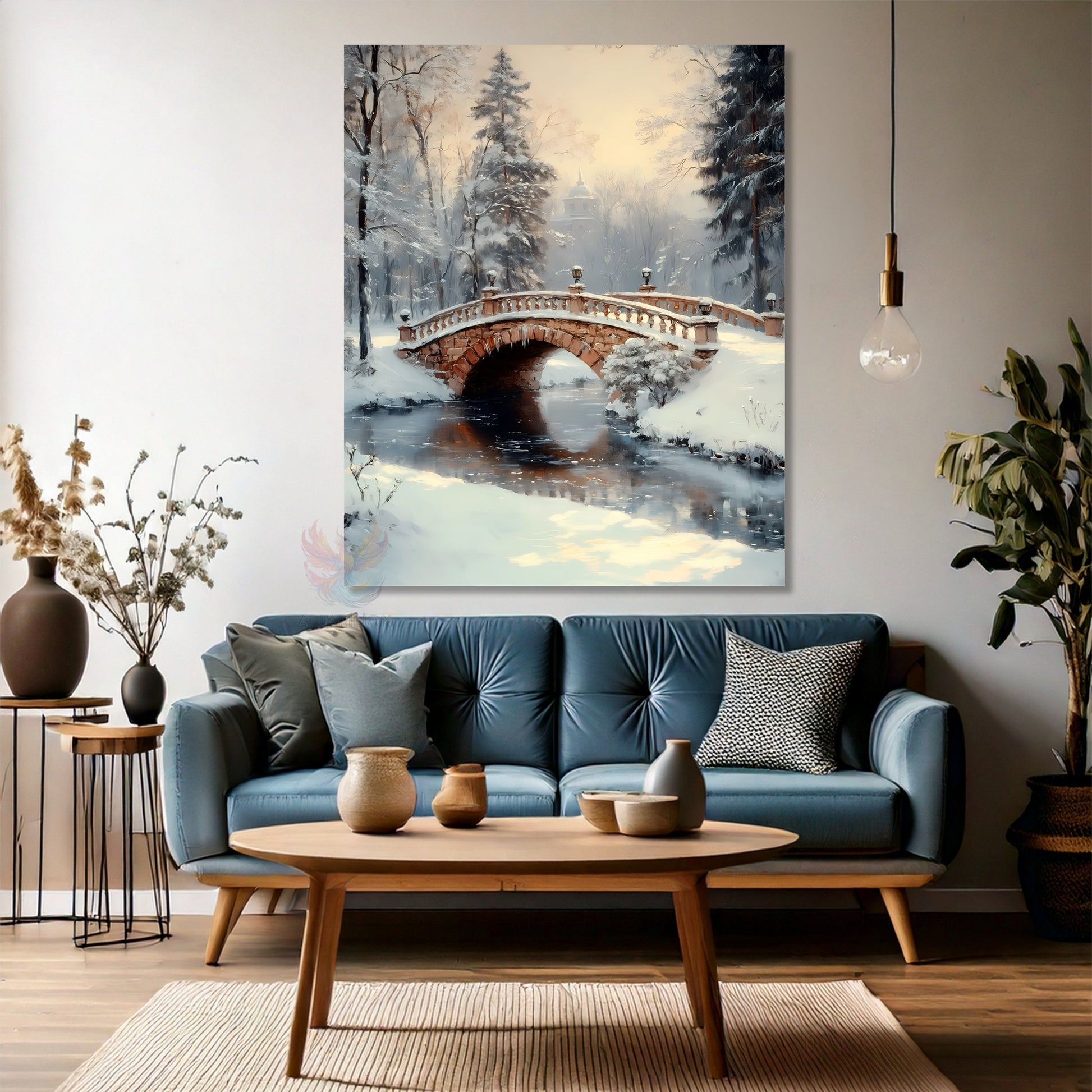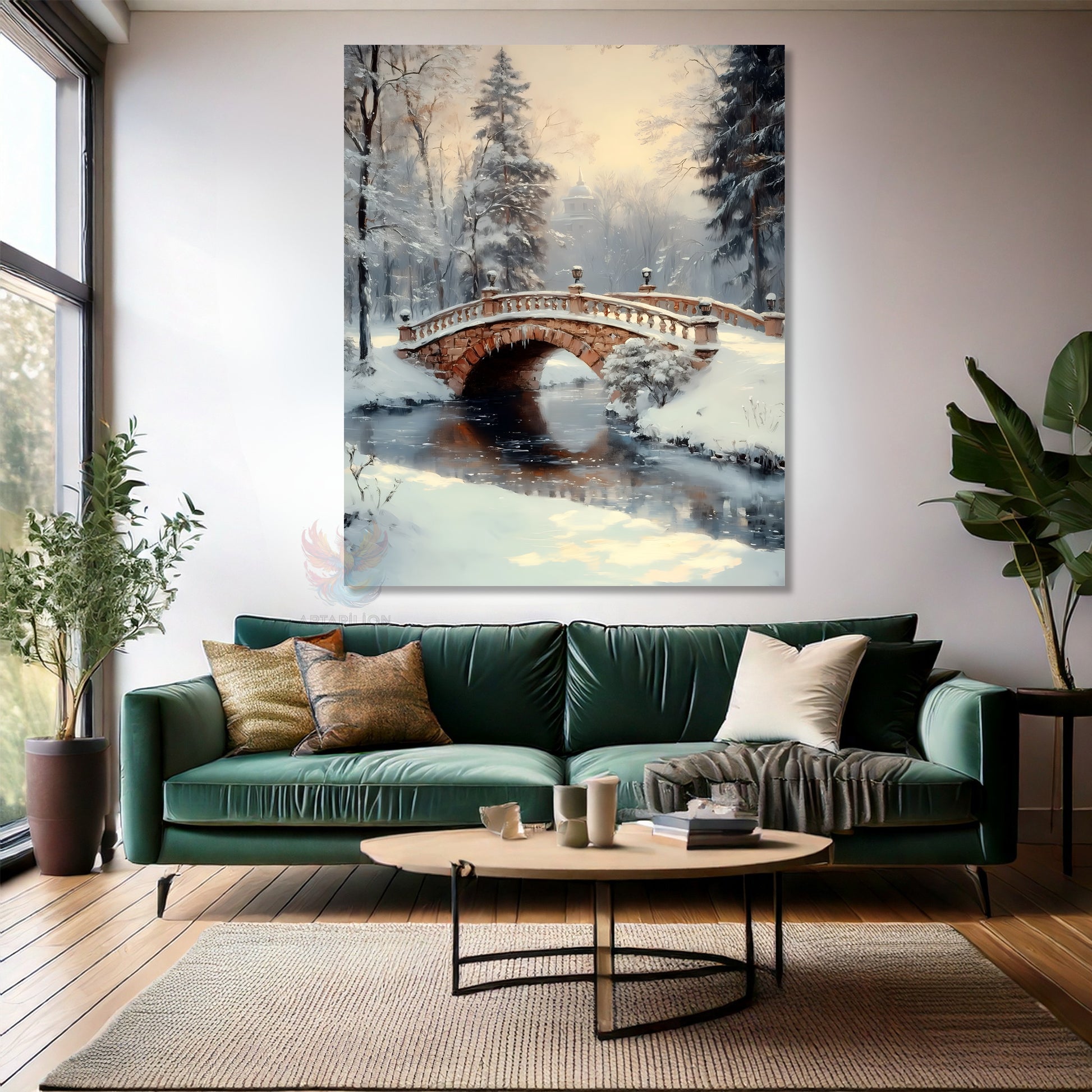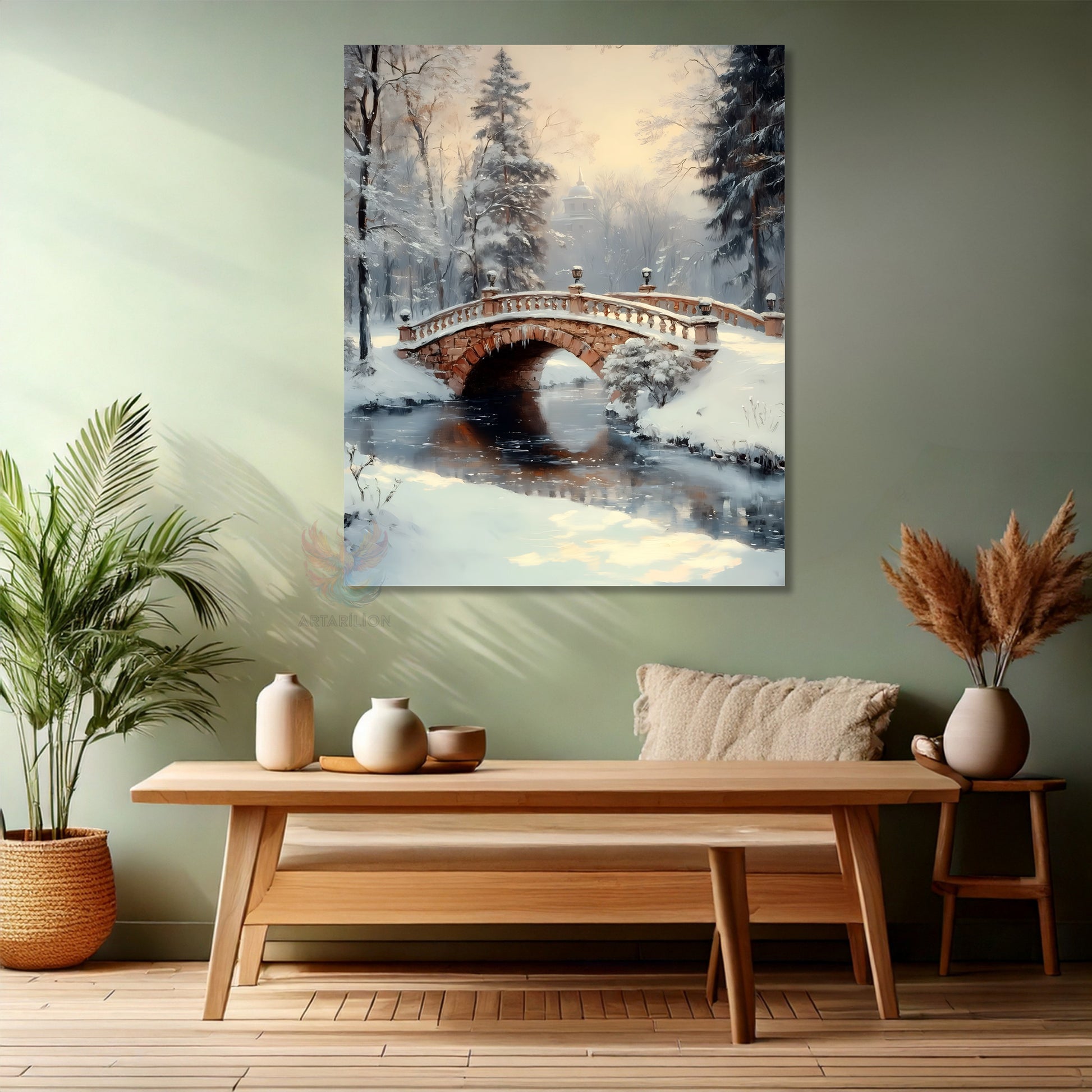 Kanvas Dikey Duvar Tablosu Kanvas Köprü ve Yağan Kar Manzarası Ev Ofis Salon Modern Duvar Tablosu