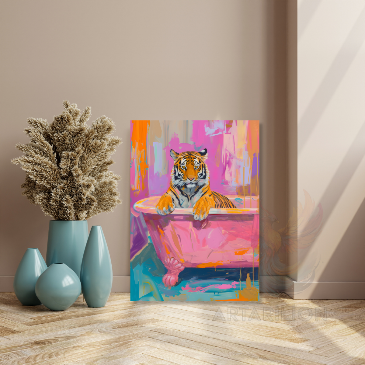 Kanvas Tablo Küvetteki Kaplan Renkli Kanvas Tablo Banyo Tablosu