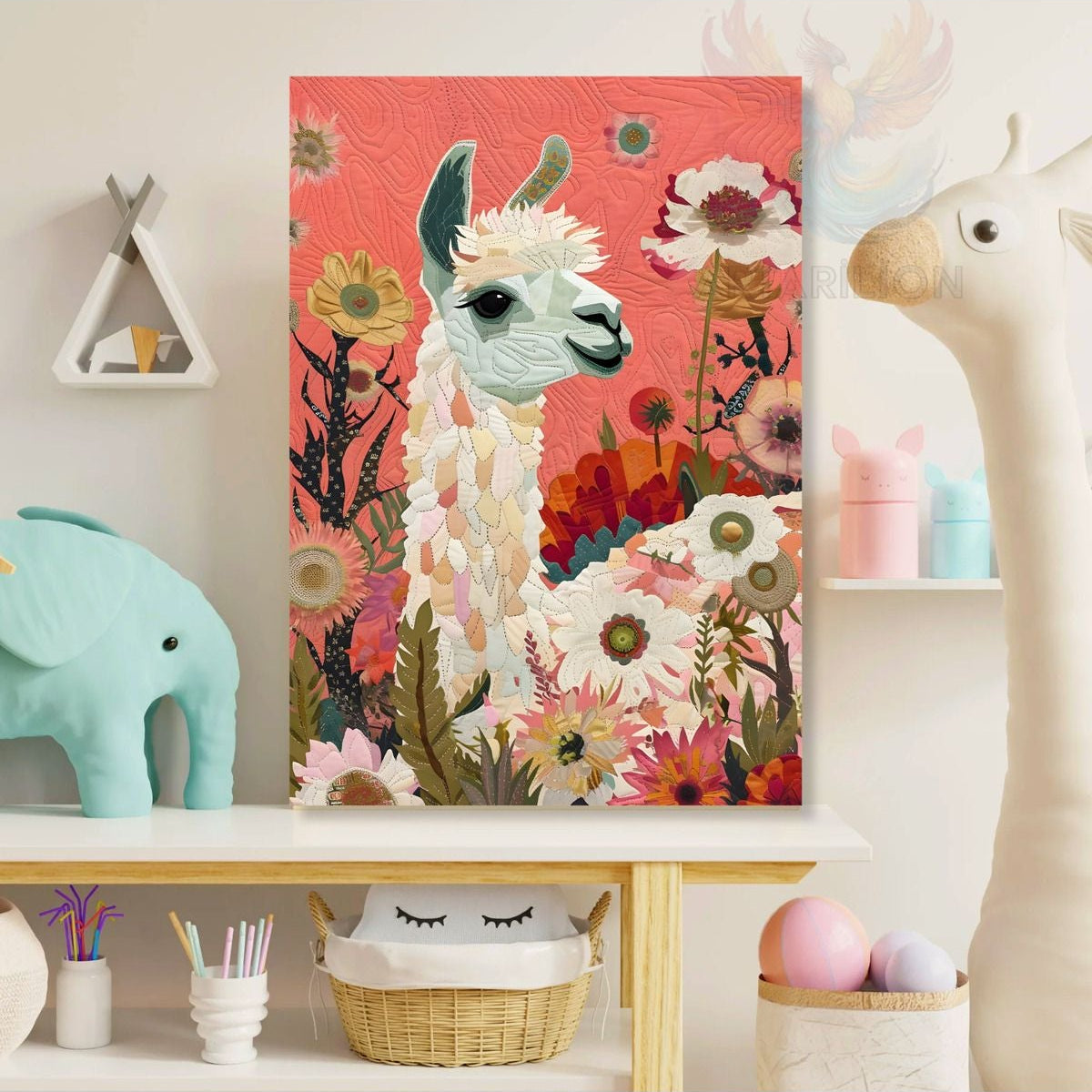 Kanvas Lama ve Çiçekler Baskı Tablo Oyun Odası Tablosu Duvar Dekoru Çocuk Odası Tablosu