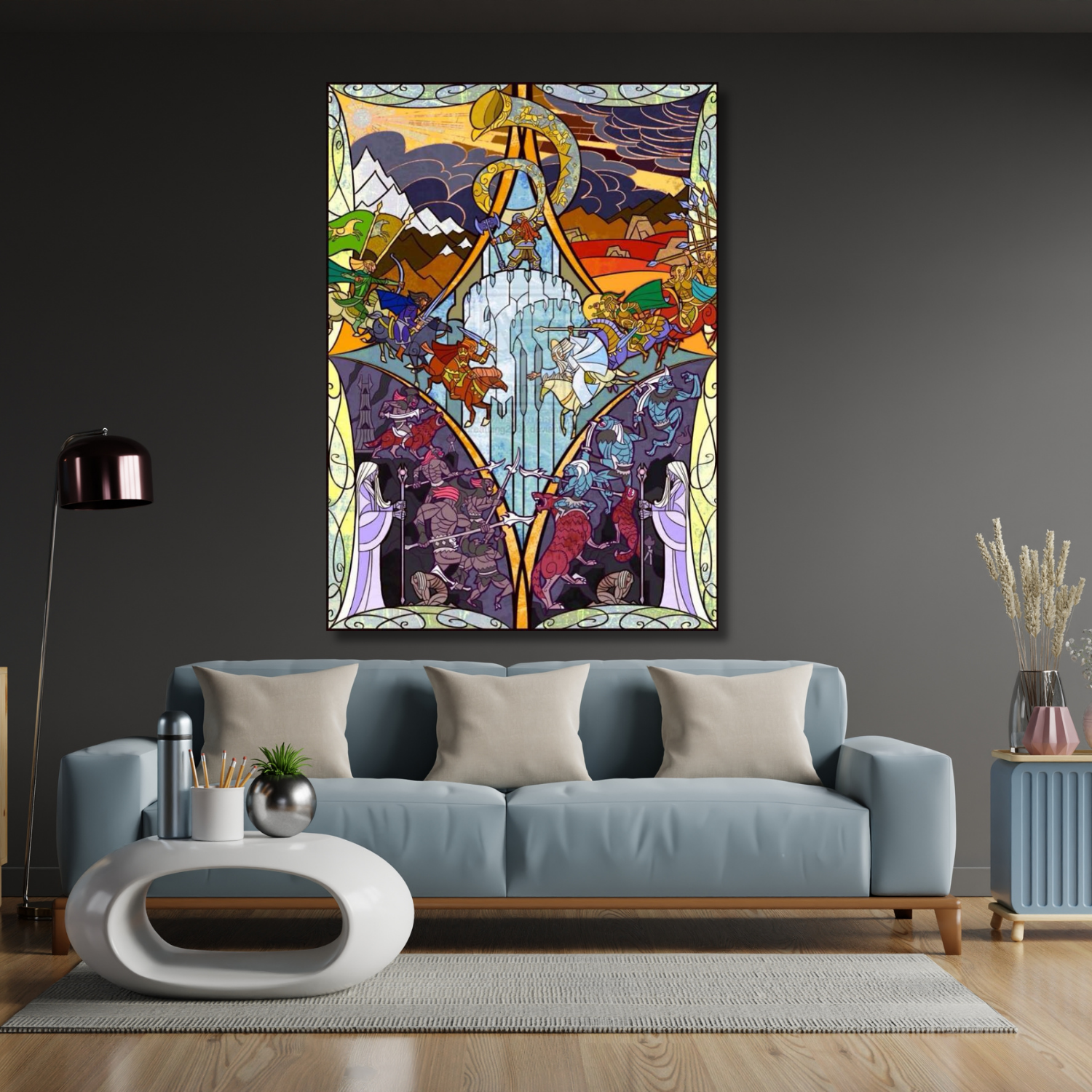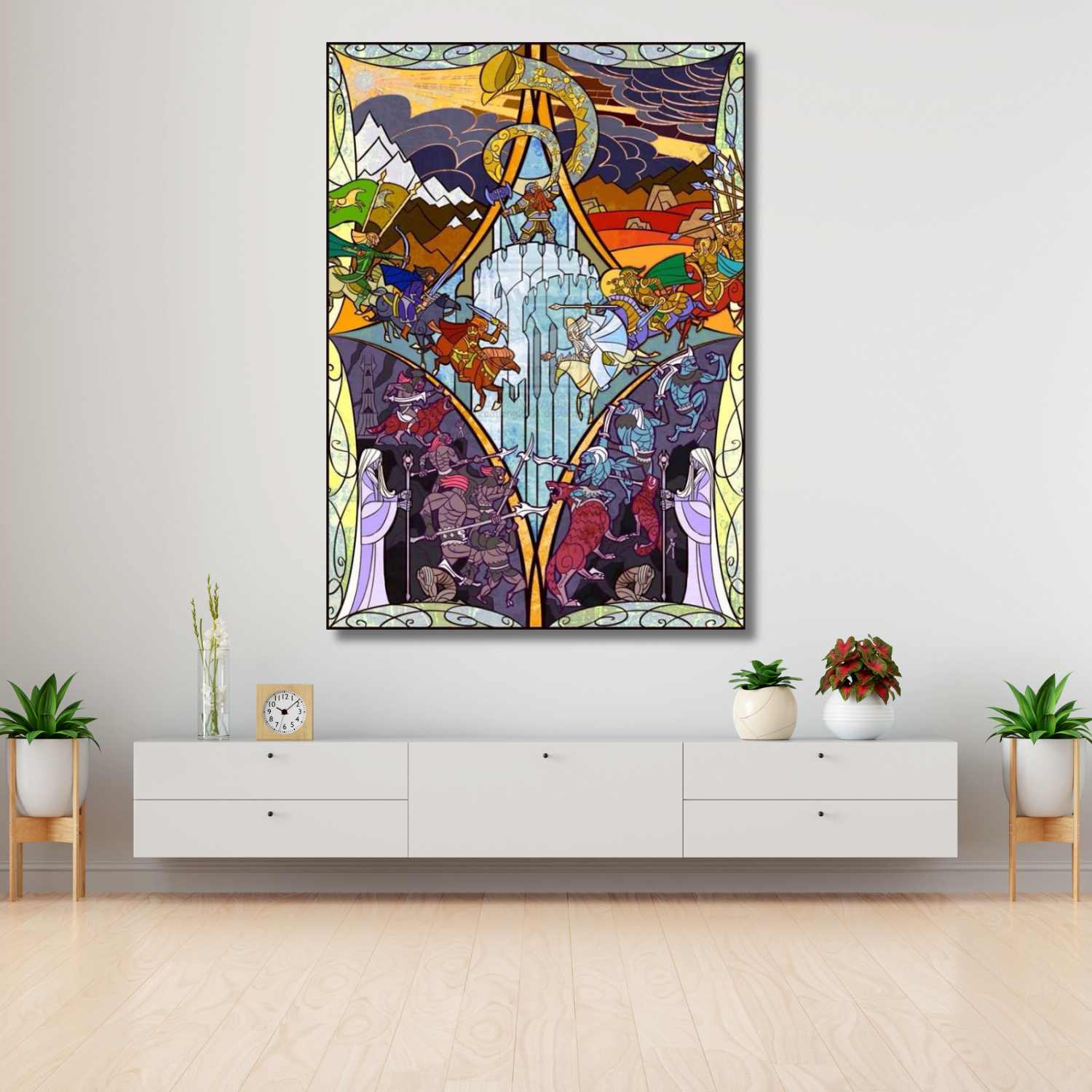 Kanvas Tablo Mozaik Görünümlü Yüzüklerin Efendisi Temalı Dijital Baskı Kanvas Tablo Oyuncu Odası Dizi Film Tablosu