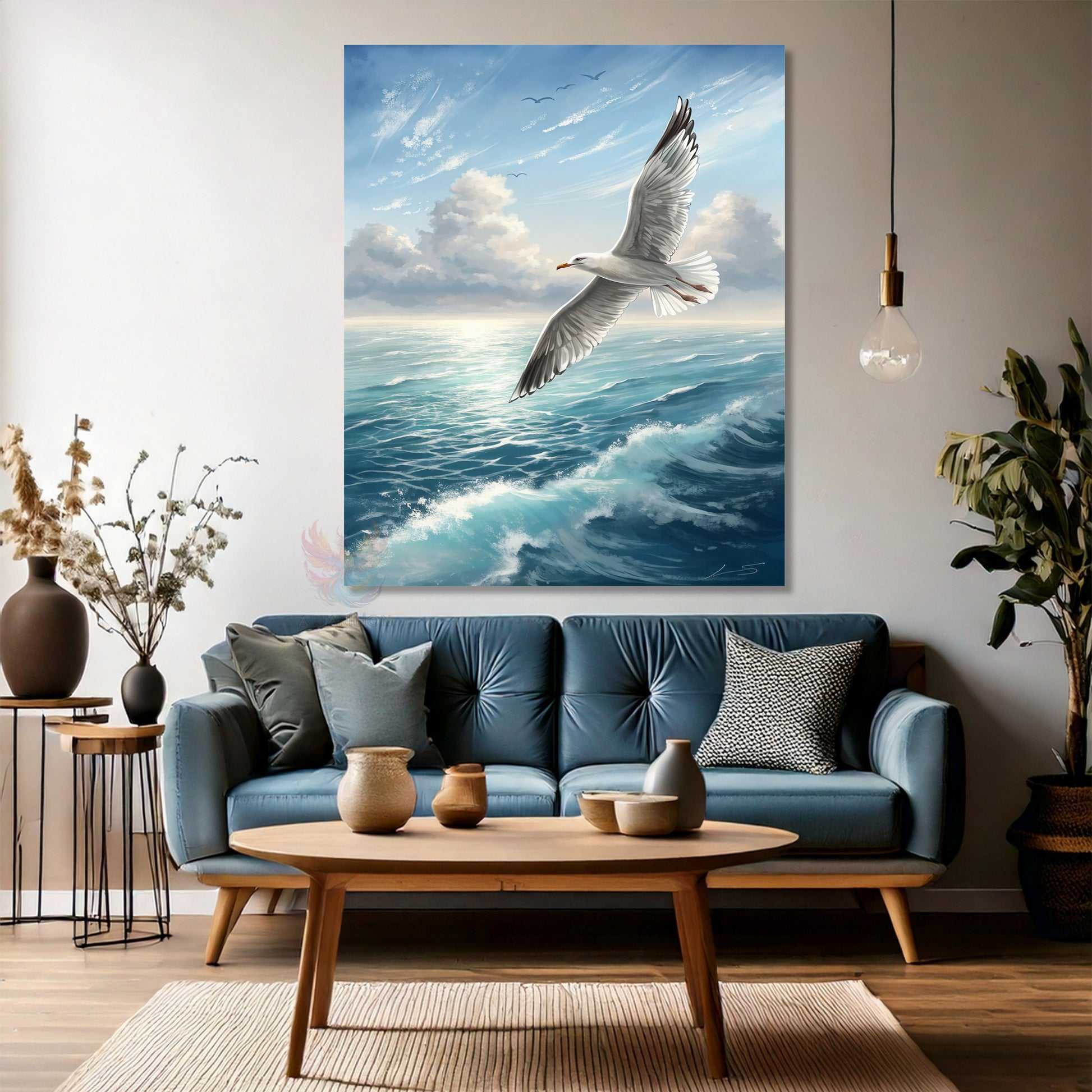 Kanvas Dikey Duvar Tablosu Kanvas Martı ve Okyanus Ev Ofis Salon Modern Duvar Tablosu