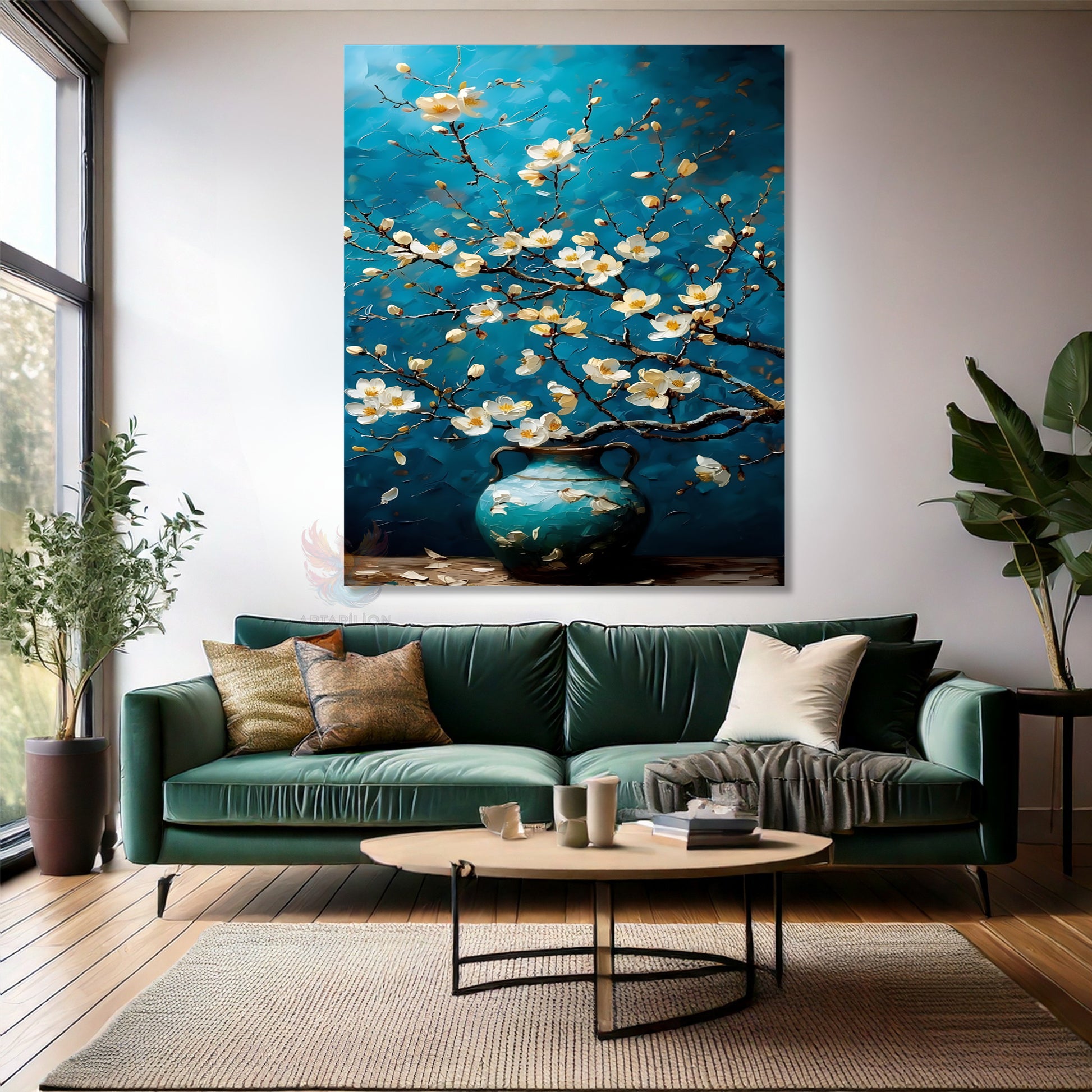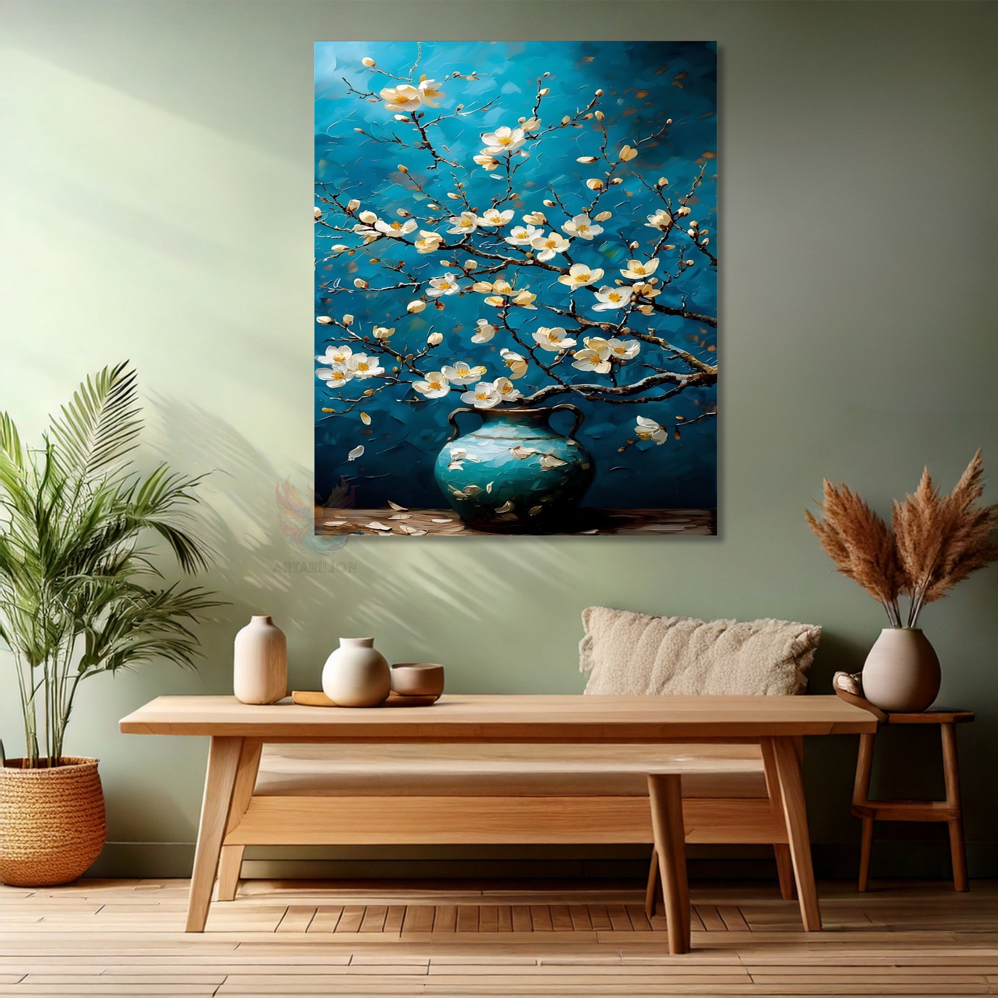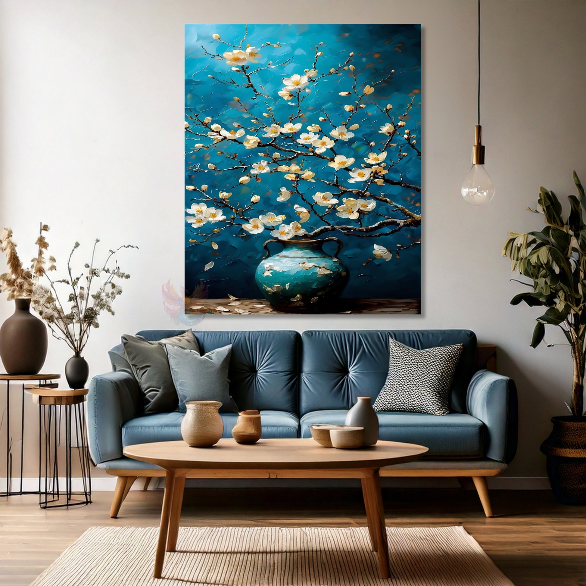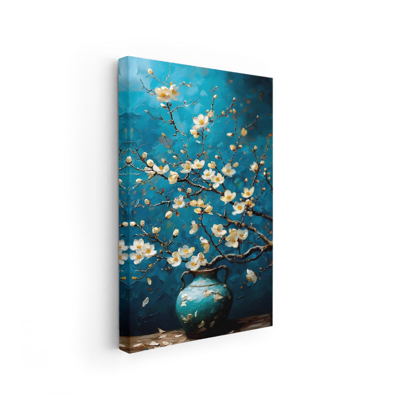Kanvas Dikey Duvar Tablosu Kanvas Mavi Vazodaki Çiçekler Ev Ofis Salon Modern Duvar Tablosu