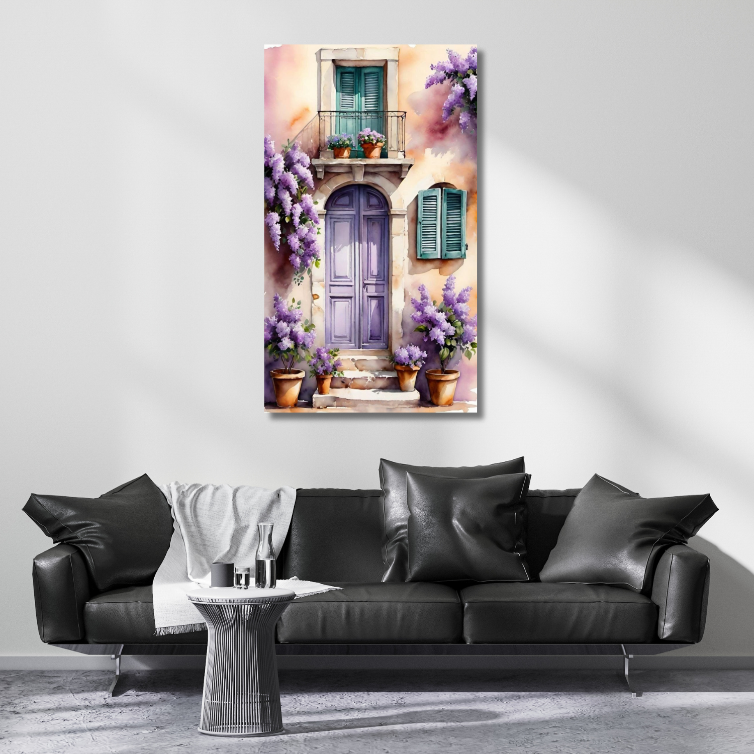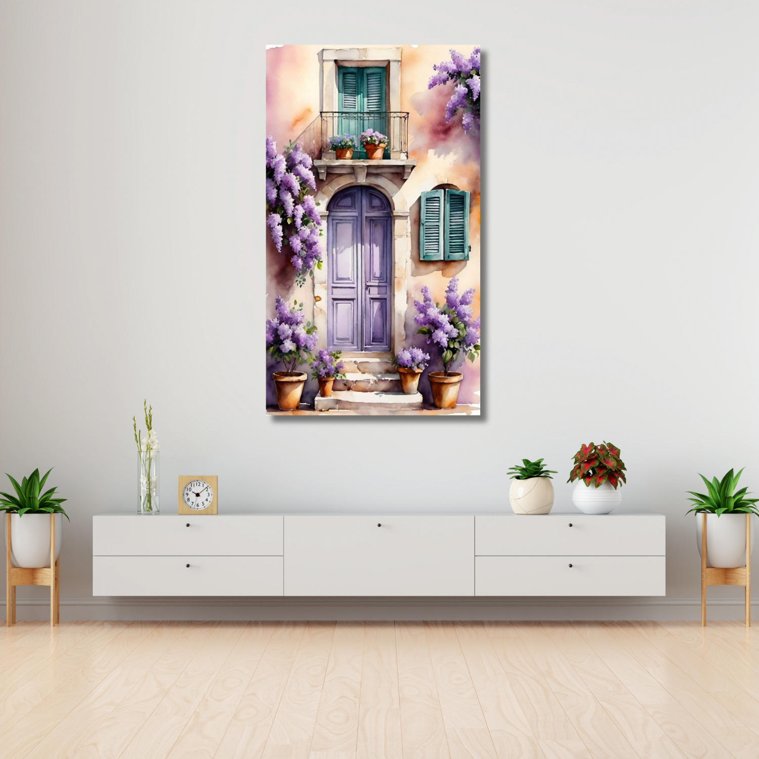 Kanvas Manzara Mor Kapı Çiçekler Kanvas Hd Dijital Baskı Tablo Salon Tablosu