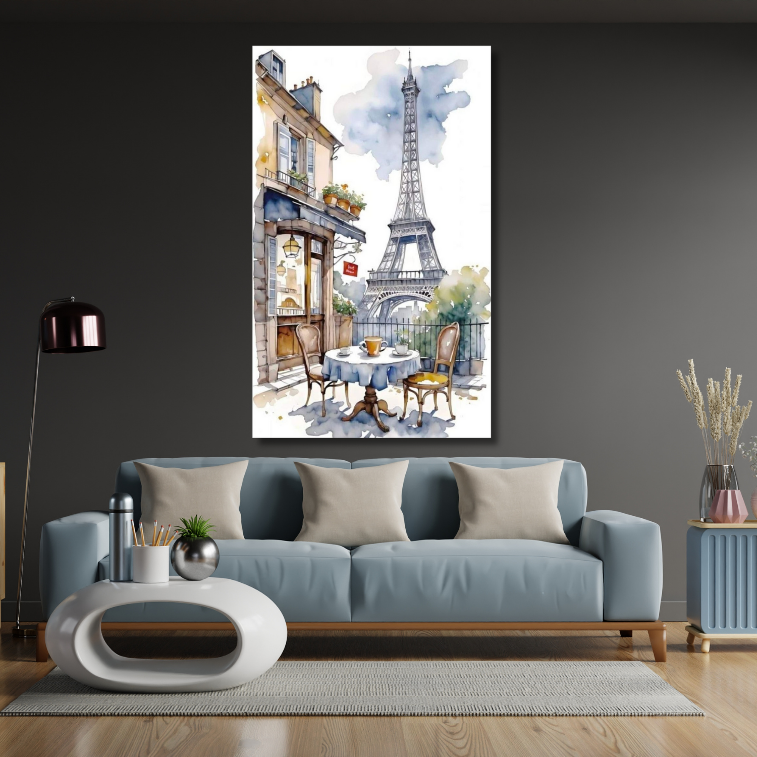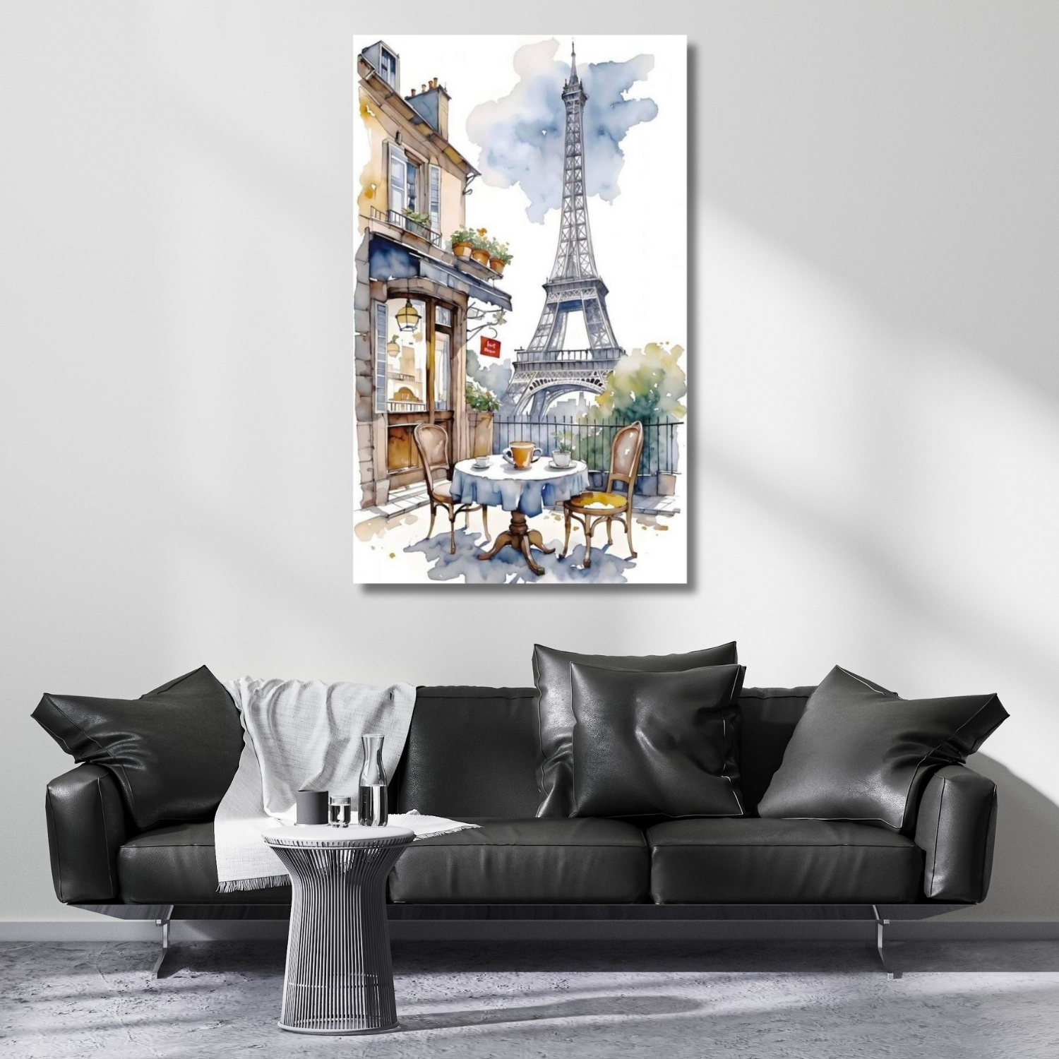 Sulu Boya Görünümlü Kanvas Paris Eyfel Kulesi Tablo Kanvas Tablo