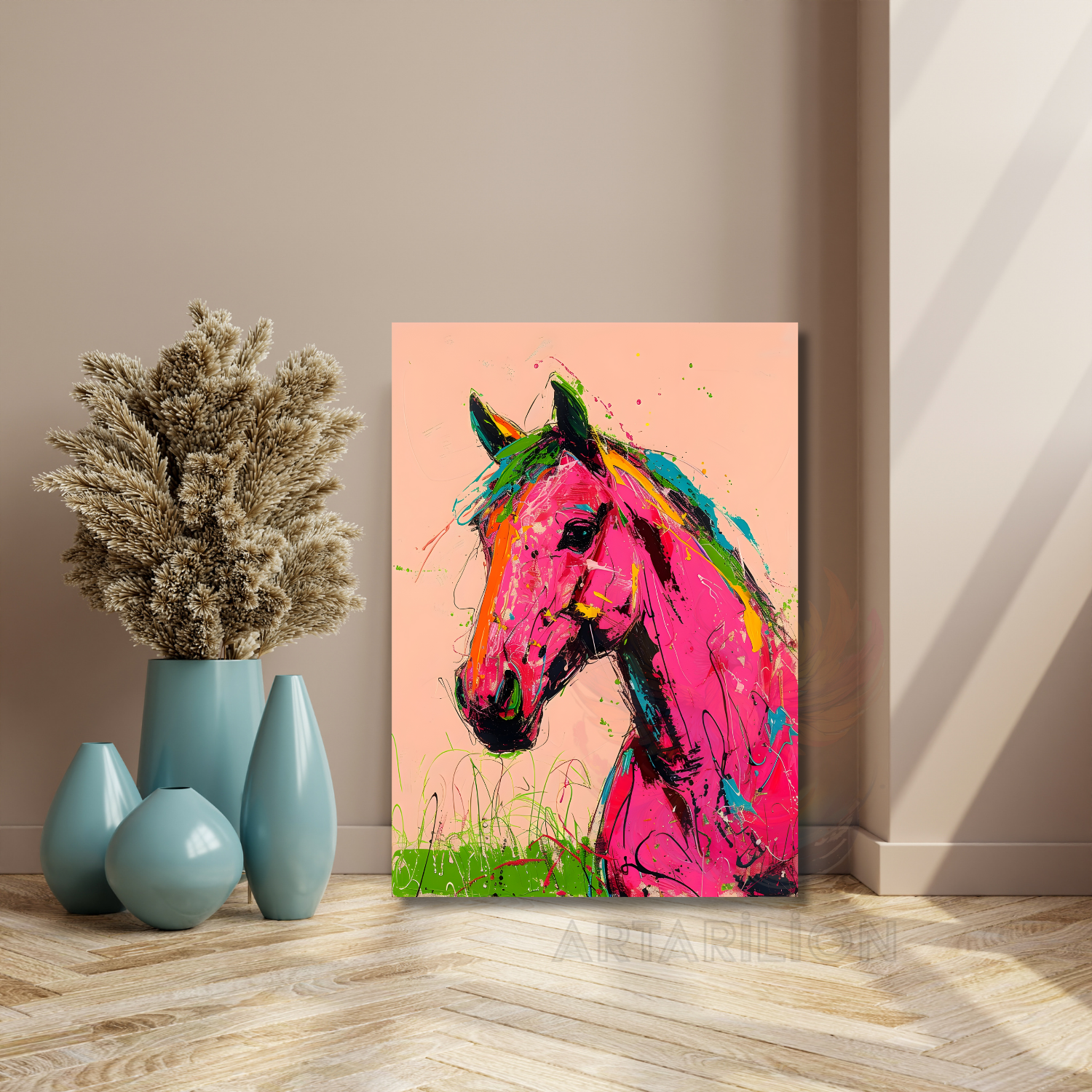Pembe At Kanvas Tablo Salon Tablosu Ev Dekoru Yeni Ev Hediyesi
