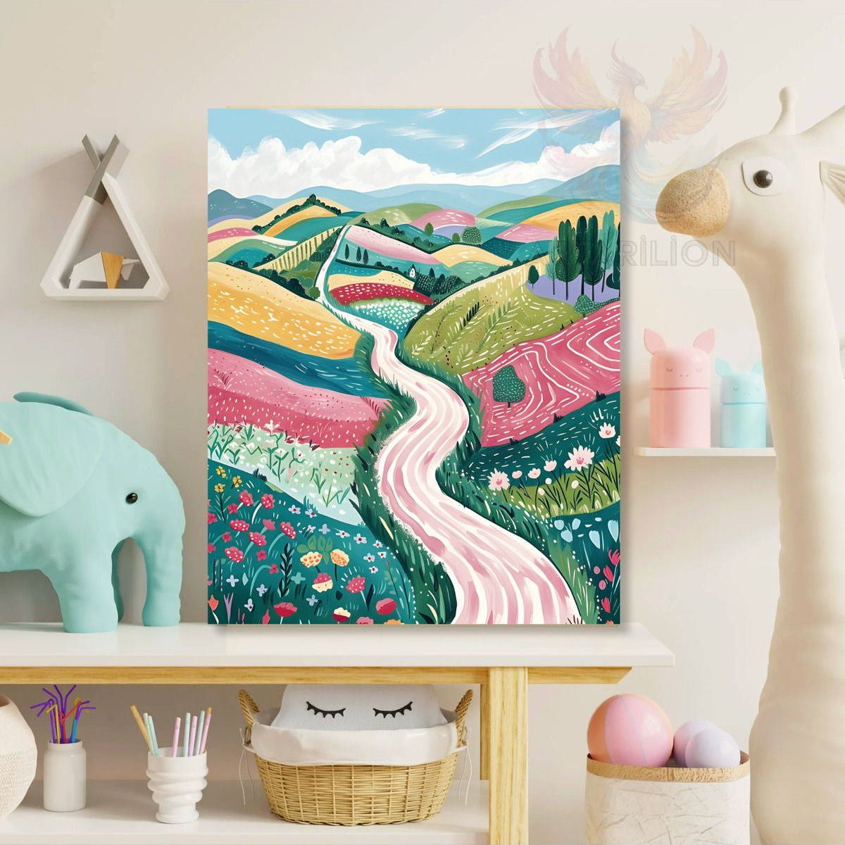 Kanvas Renkli Doğa ve Yol Desenli Baskı Tablo Oyun Odası Tablosu Çocuk Odası Tablosu