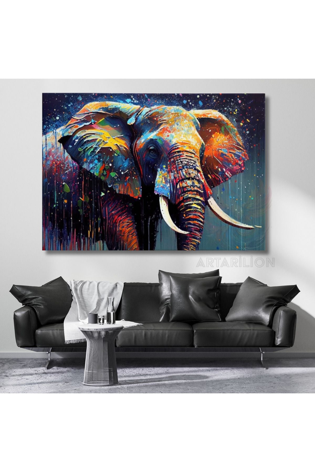 Yağlı Boya Görünümlü Renkli Fil Görseli Kanvas Tablo Salon Tablosu