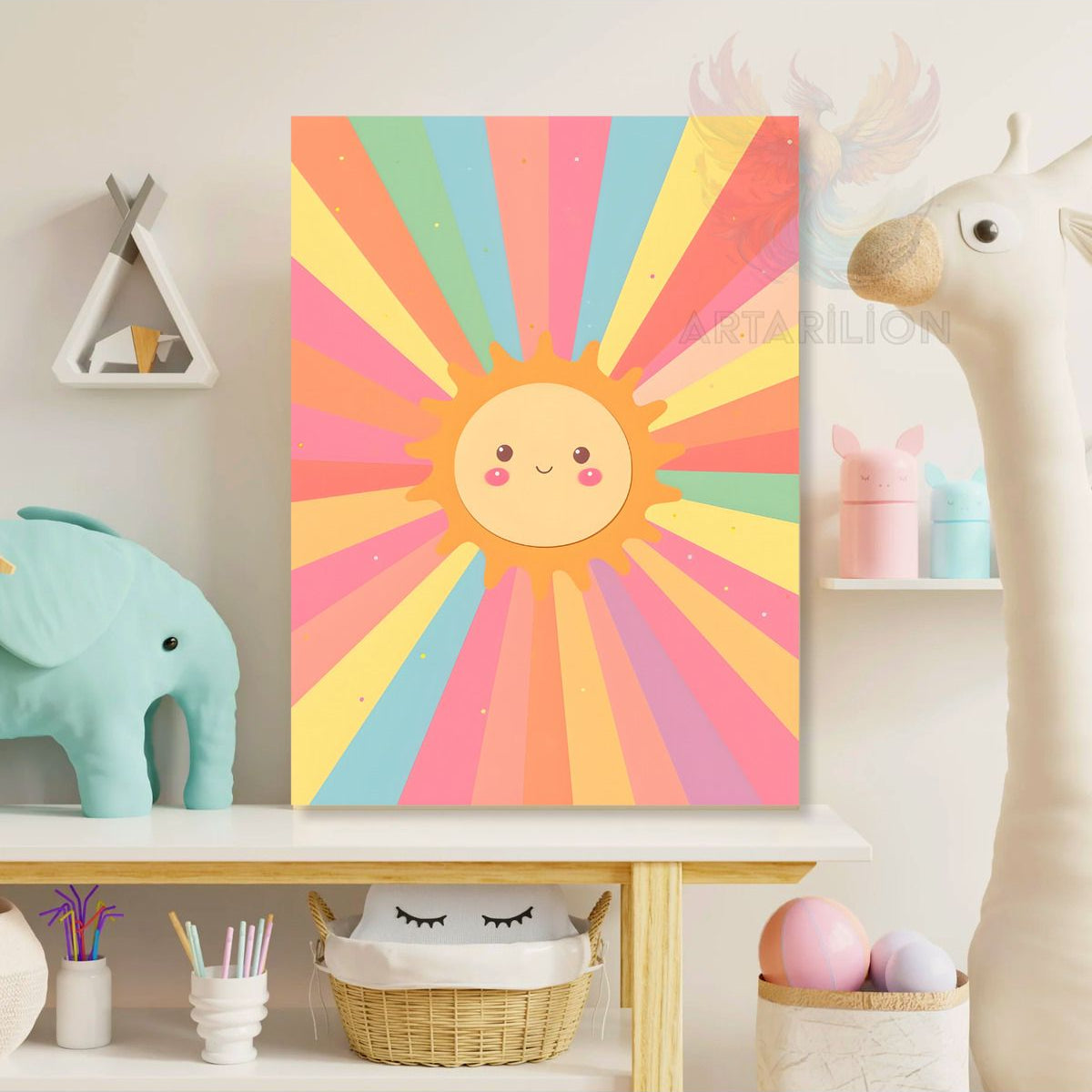 Kanvas Renkli Güneş Işınları Baskı Tablo Çocuk Odası Tablosu Duvar Dekoru Çocuk Odası Tablosu