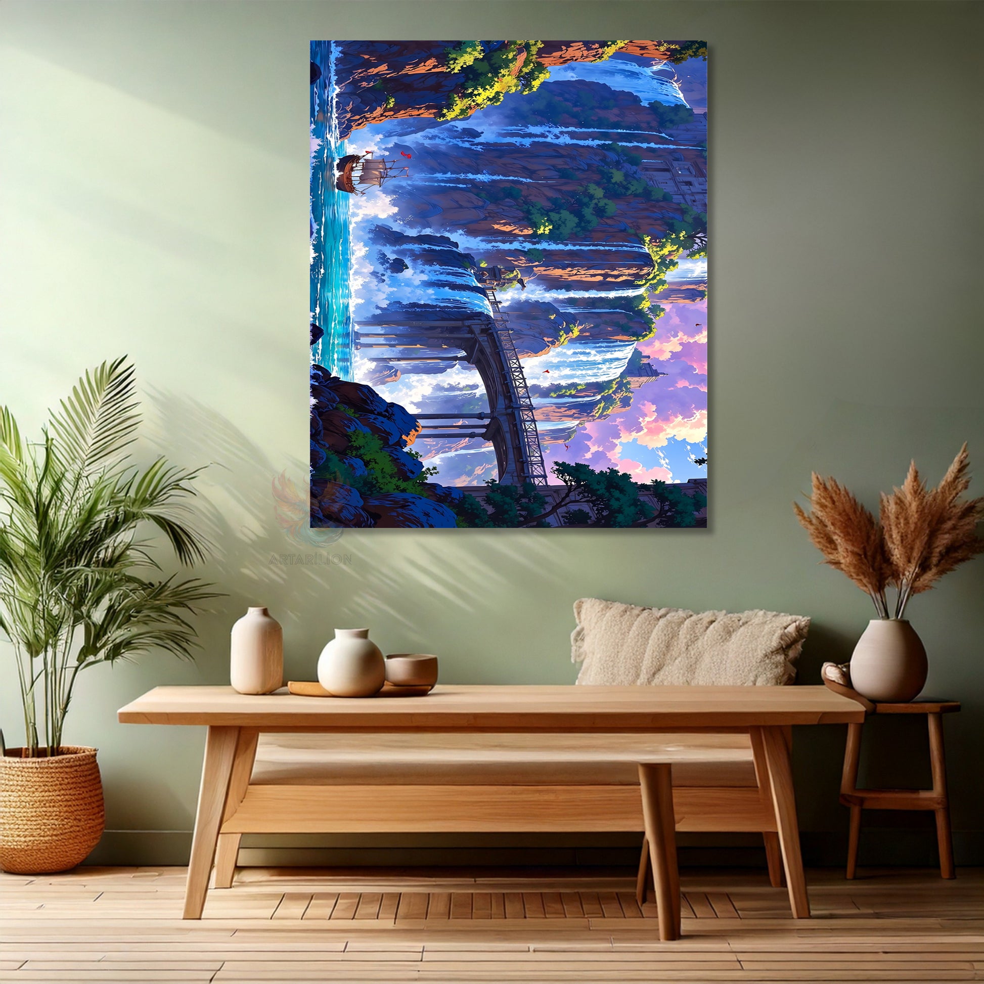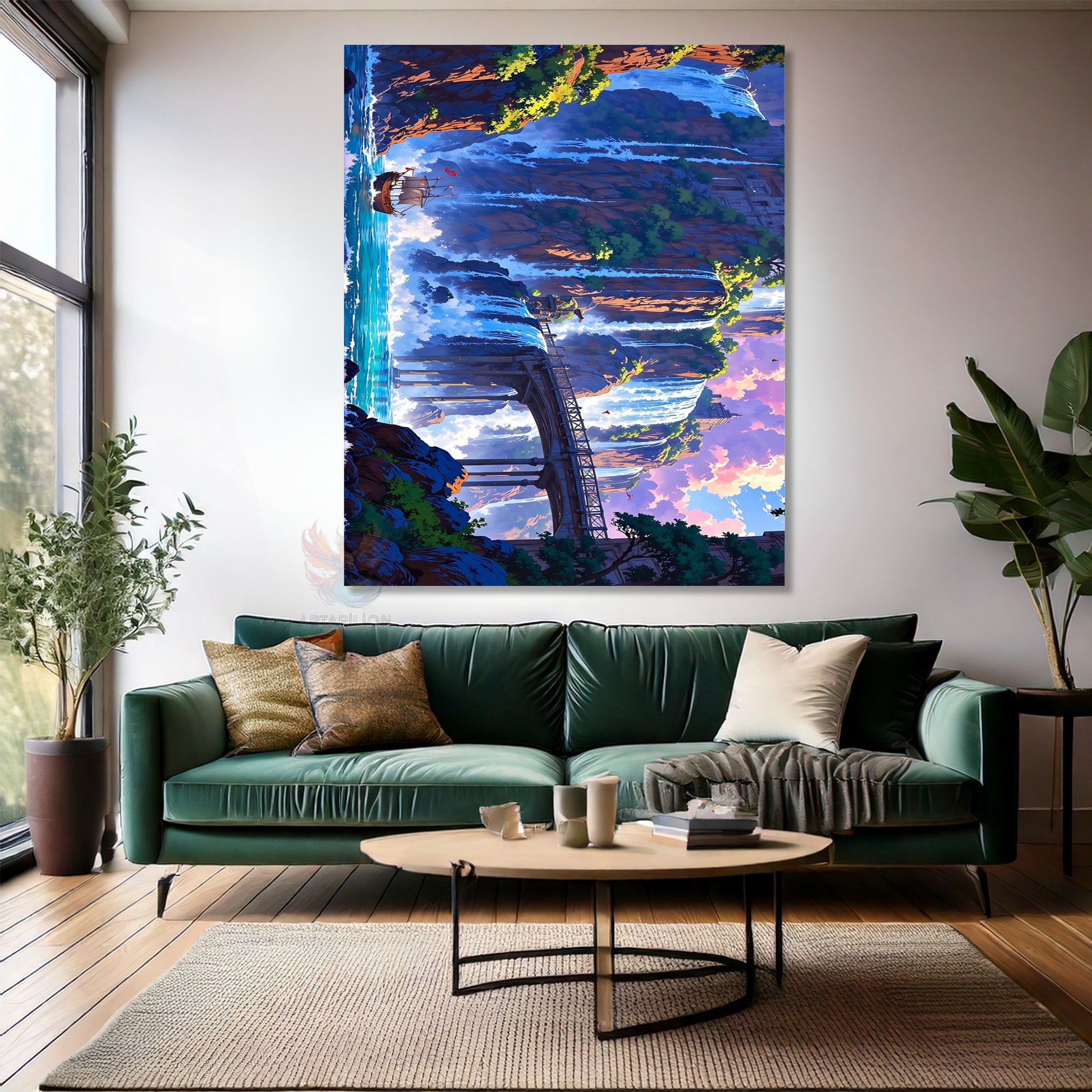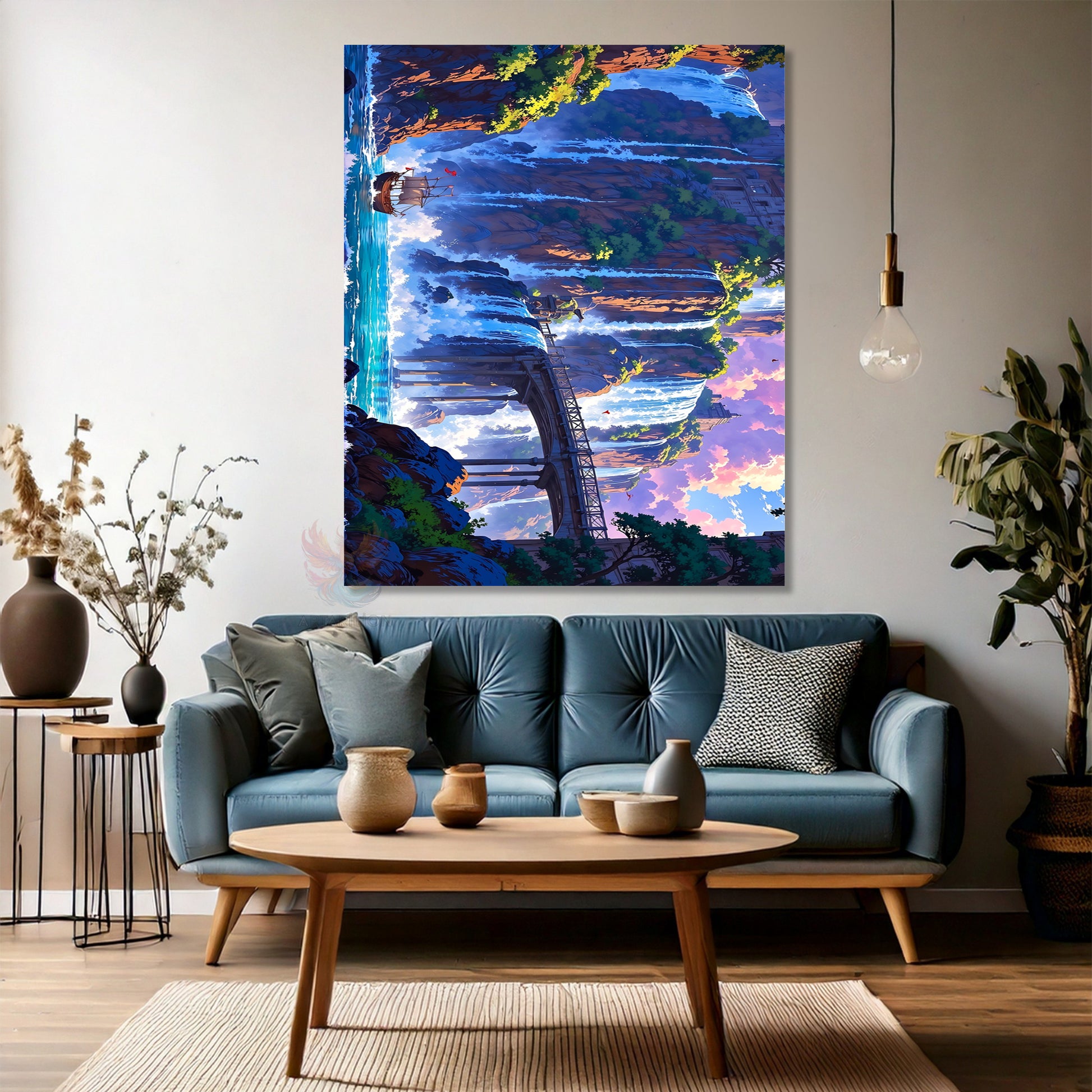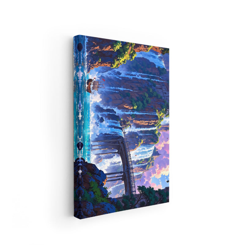 Kanvas Dikey Duvar Tablosu Kanvas Şelale Gemi Ev Ofis Salon Modern Duvar Tablosu