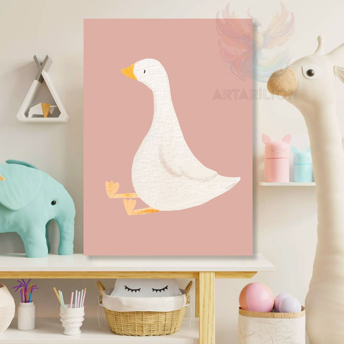 Kanvas Sevimli Kaz Desenli Baskı Tablo Oyun Odası Tablosu Duvar Dekoru Çocuk Odası Tablosu