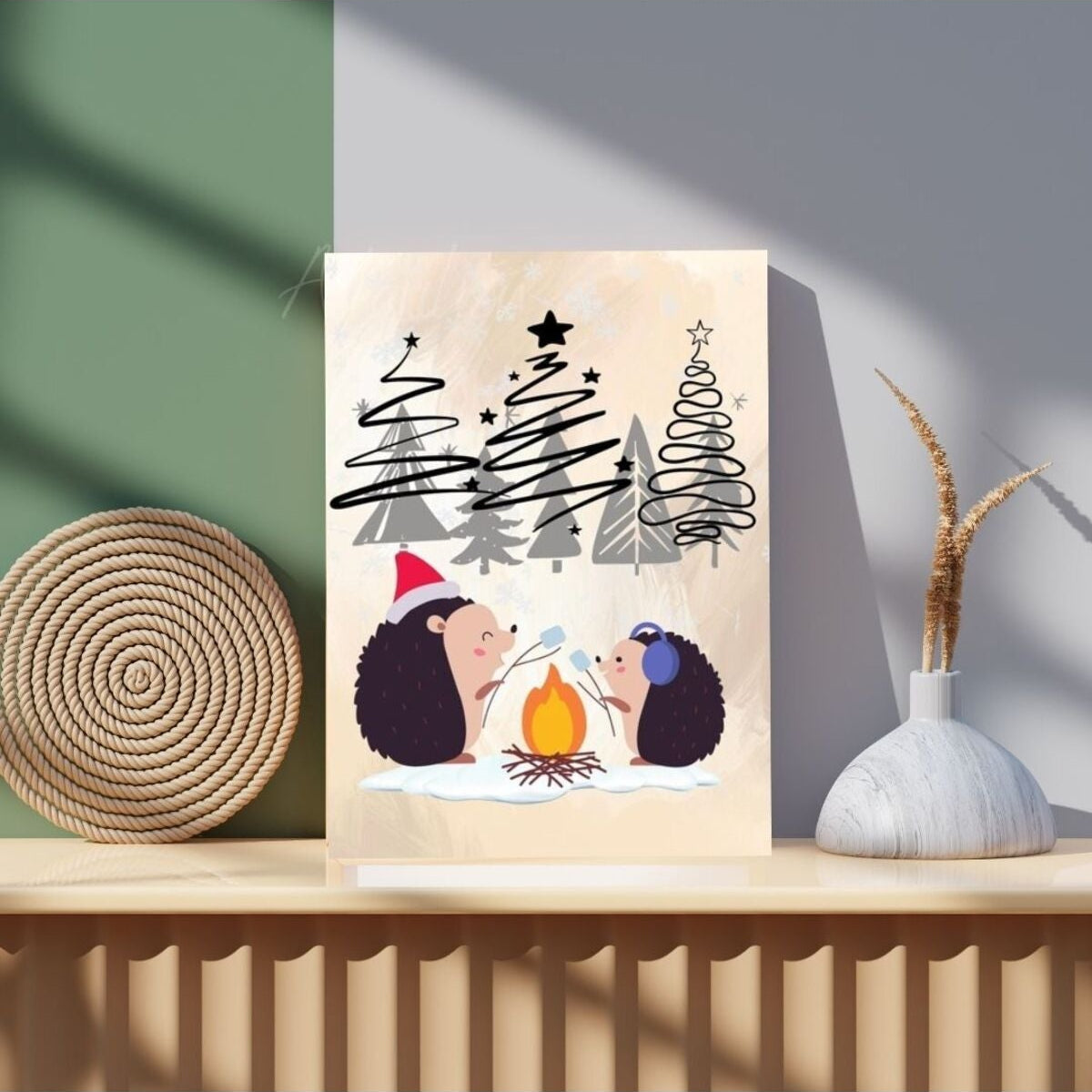Kanvas Dijital HD Baskı Kanvas Tablo Kamp Yapan Sevimli Kirpiler Duvar Tablosu