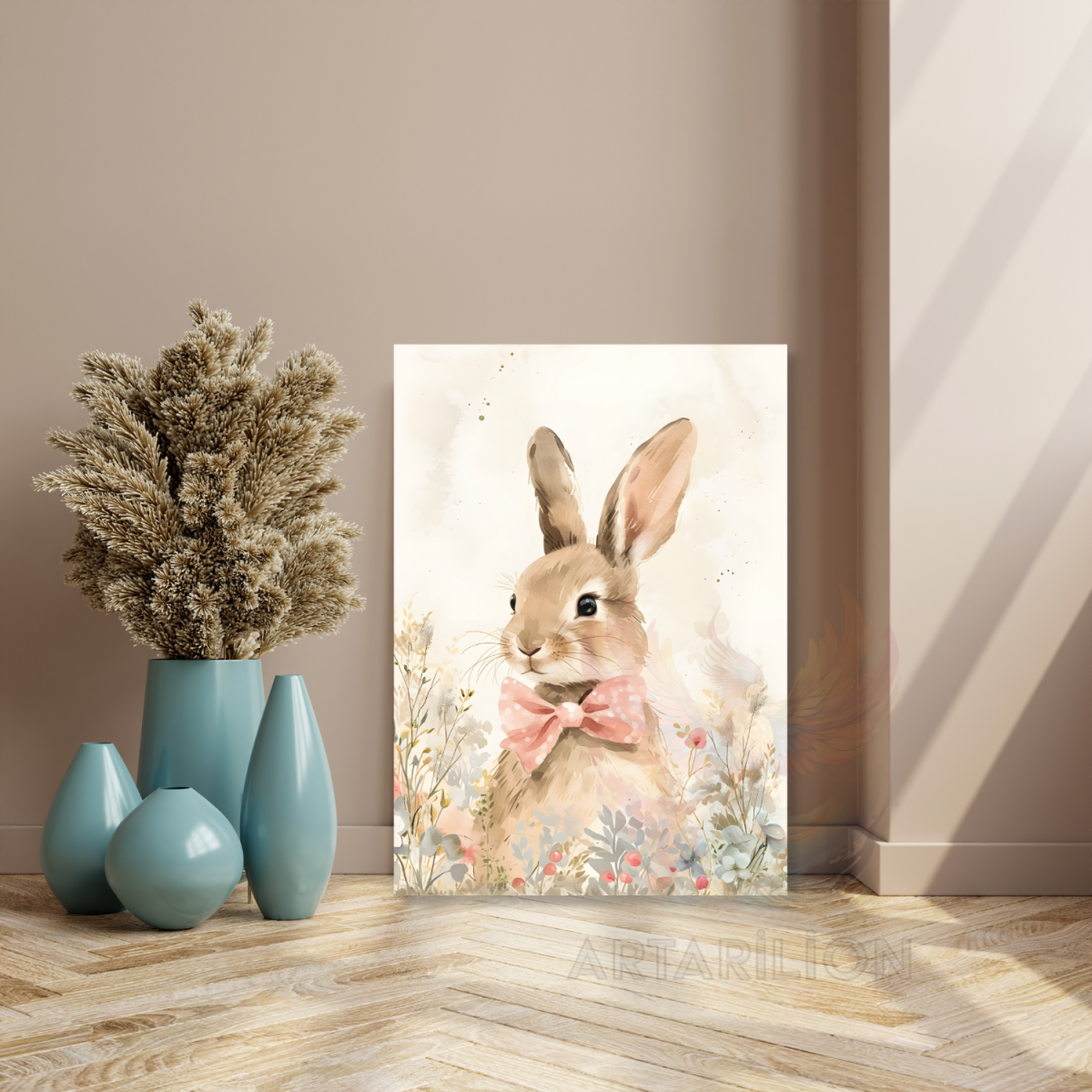 Papyonlu Sevimli Tavşan Kanvas Tablo Modern Duvar Tablosu Ev Dekoru