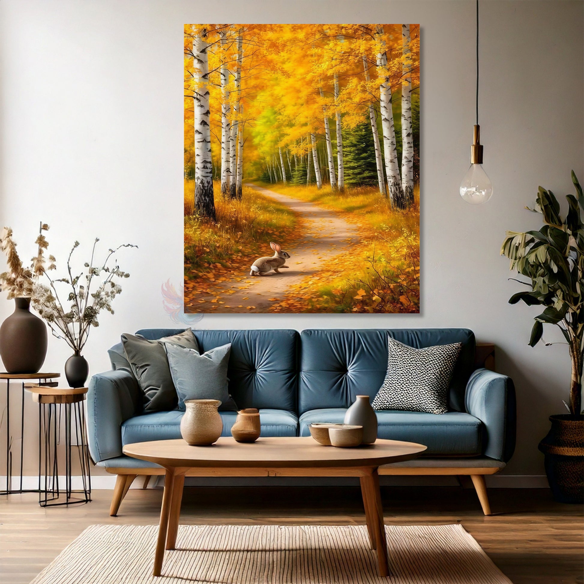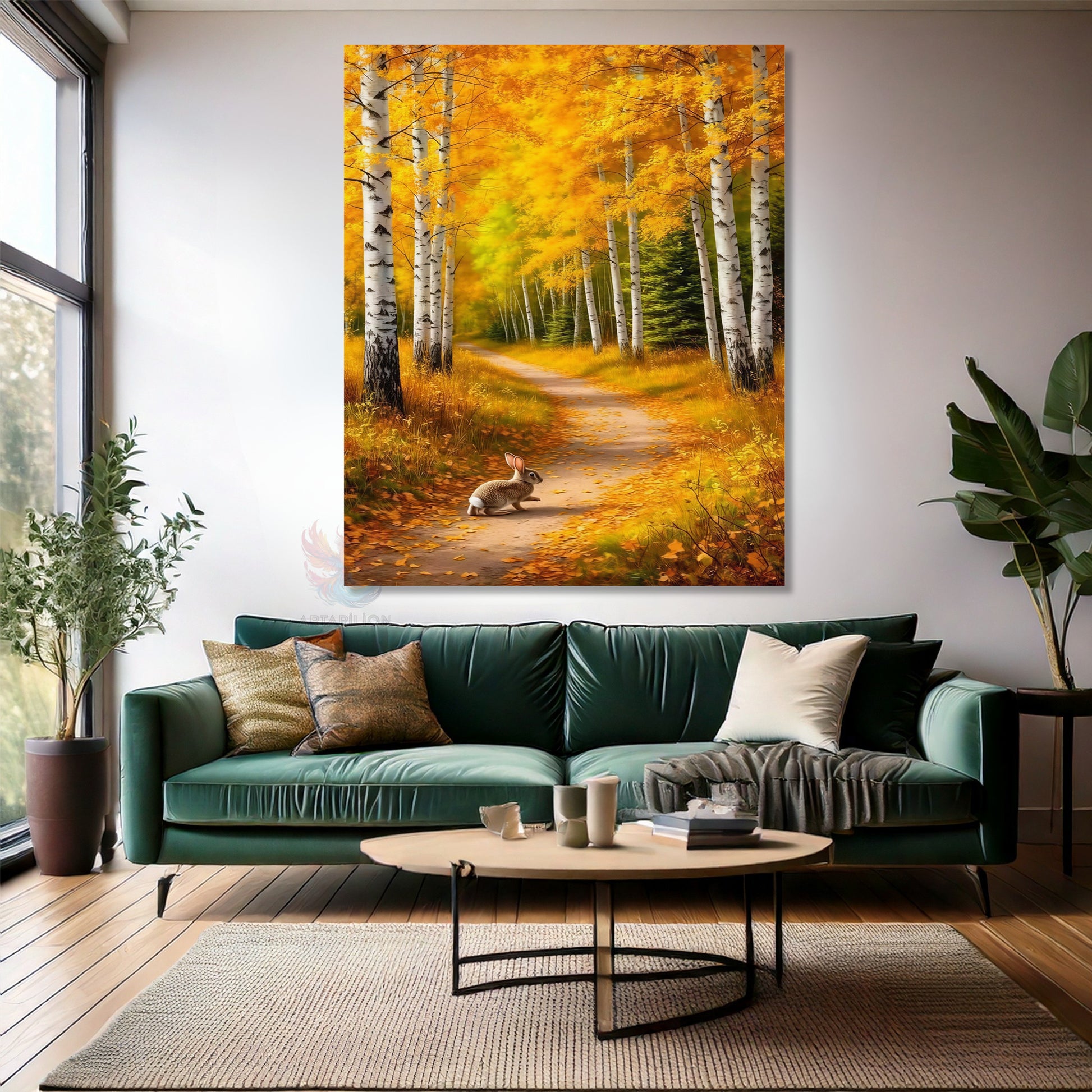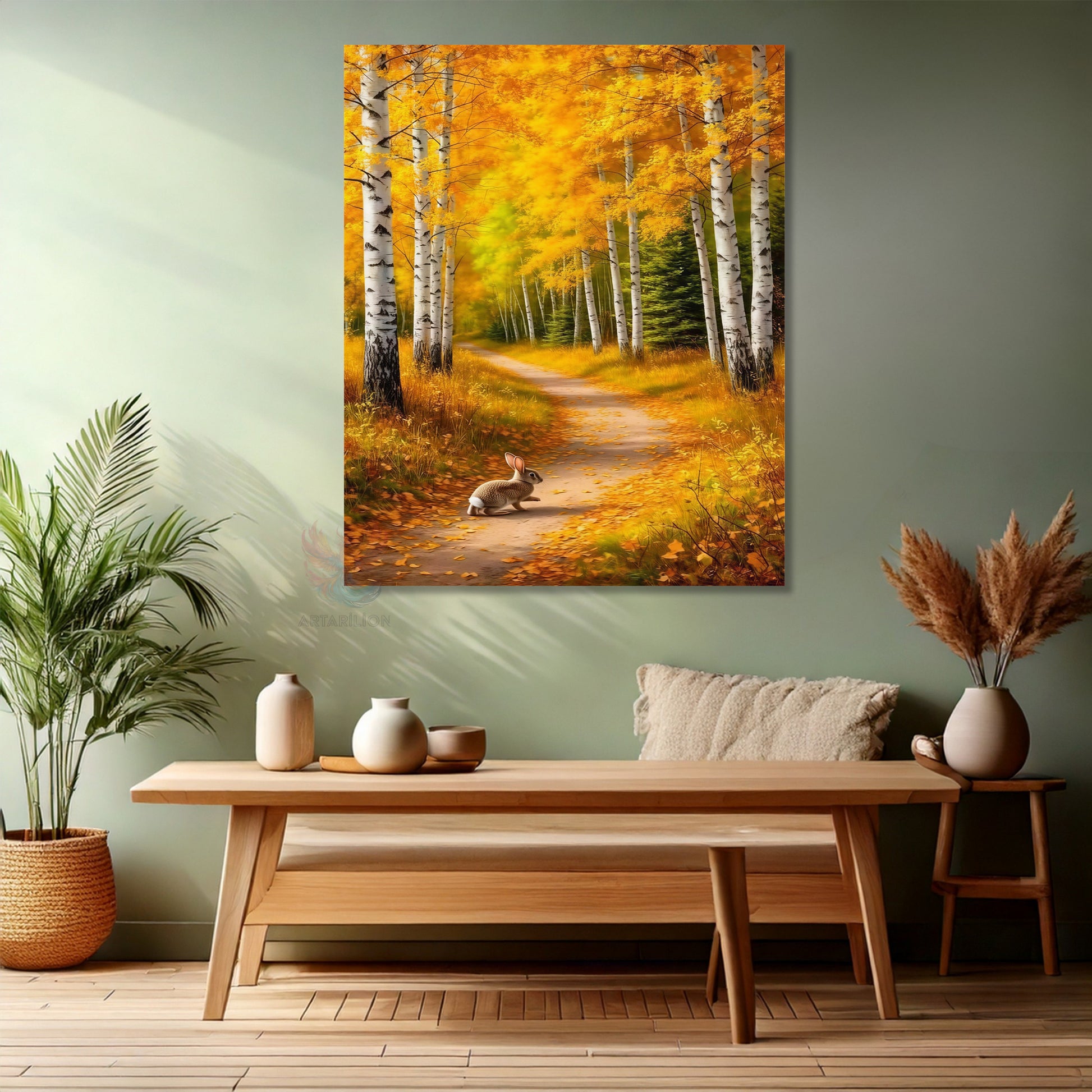 Kanvas Dikey Duvar Tablosu Kanvas Sonbahar Tavşan Ev Ofis Salon Modern Duvar Tablosu