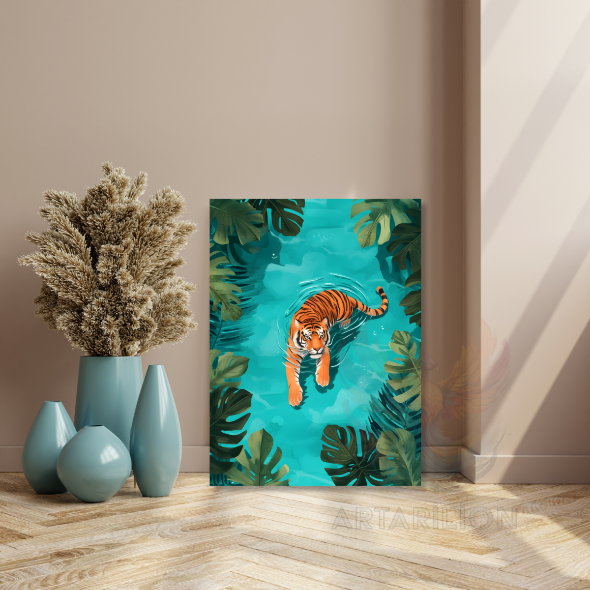 Yüzen Kaplan Kanvas Tablo Modern Ev Dekoru Duvar Tablosu