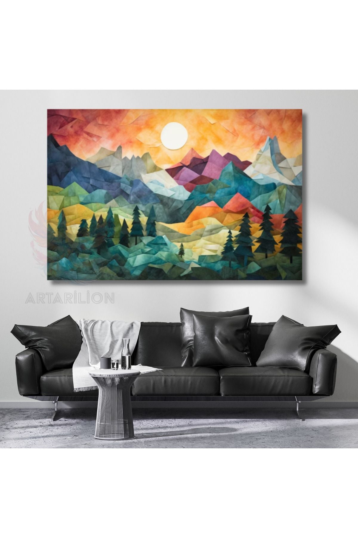 Orman ve Dağ Görünümlü Manzara Görseli Kanvas Duvar Tablosu Yeni Ev Hediyesi Tablo