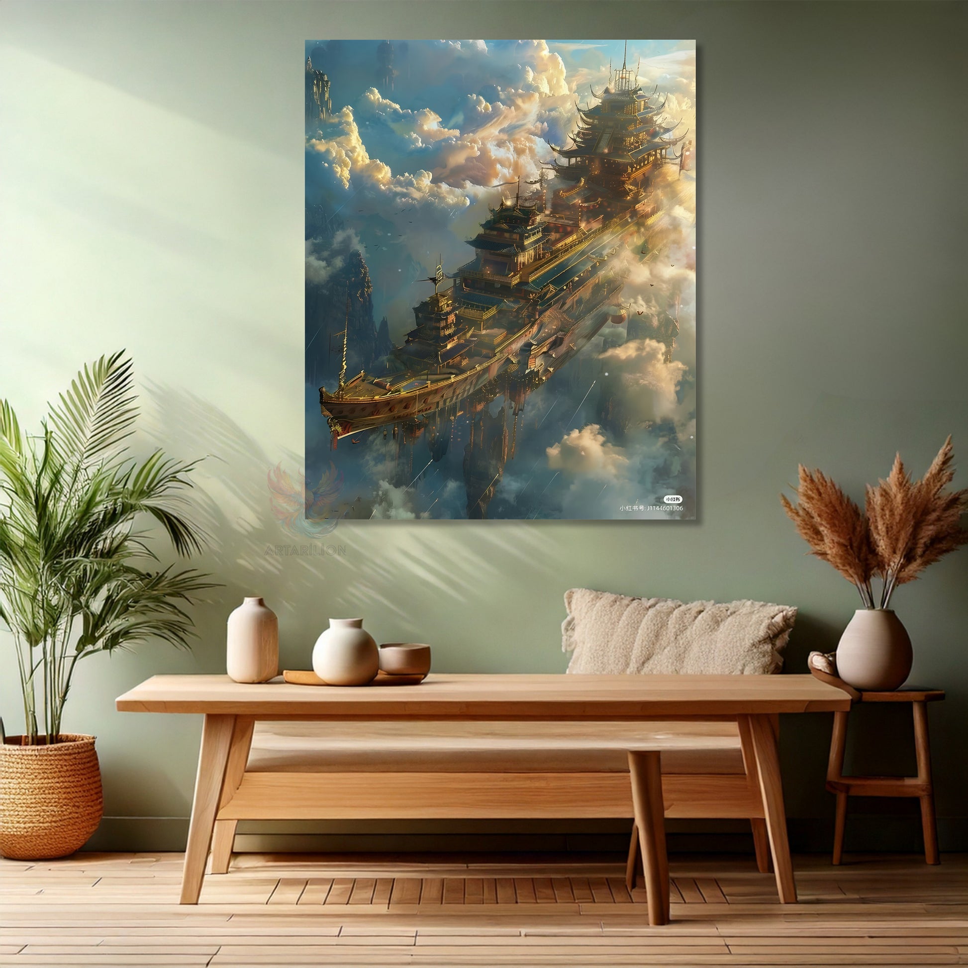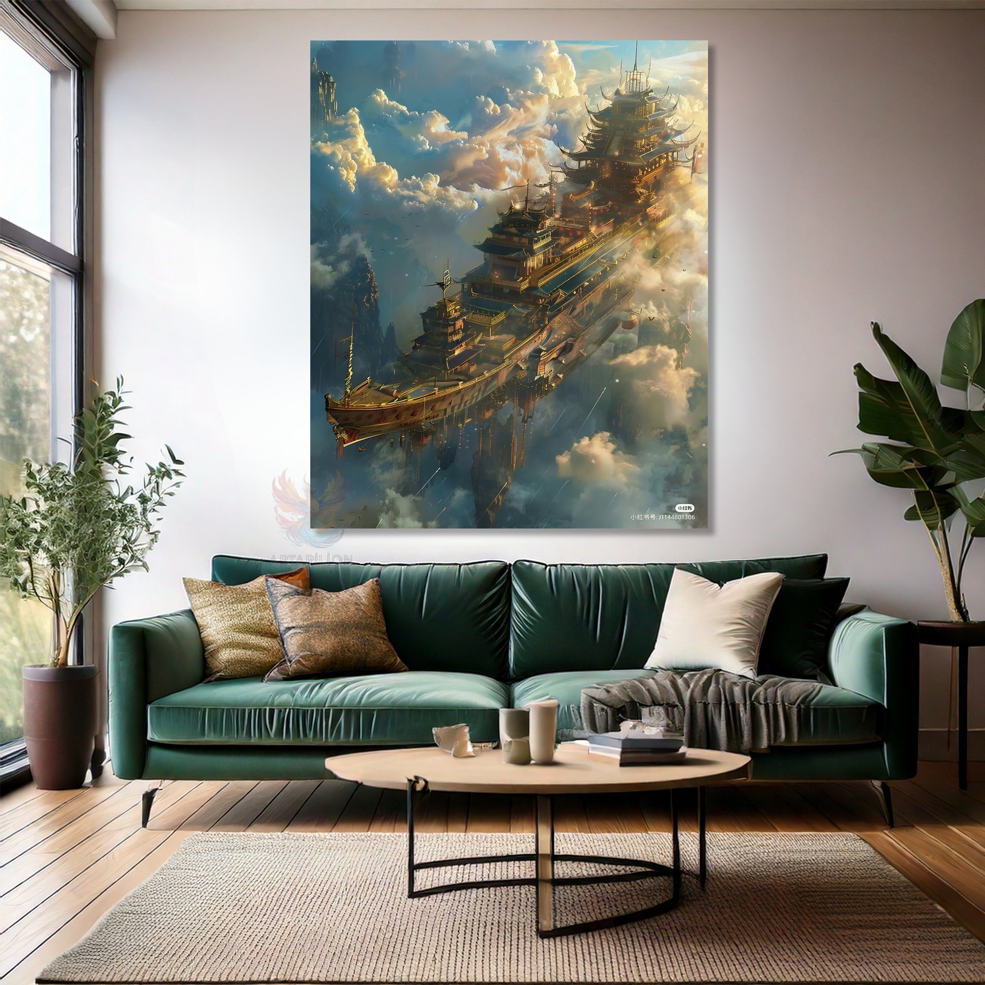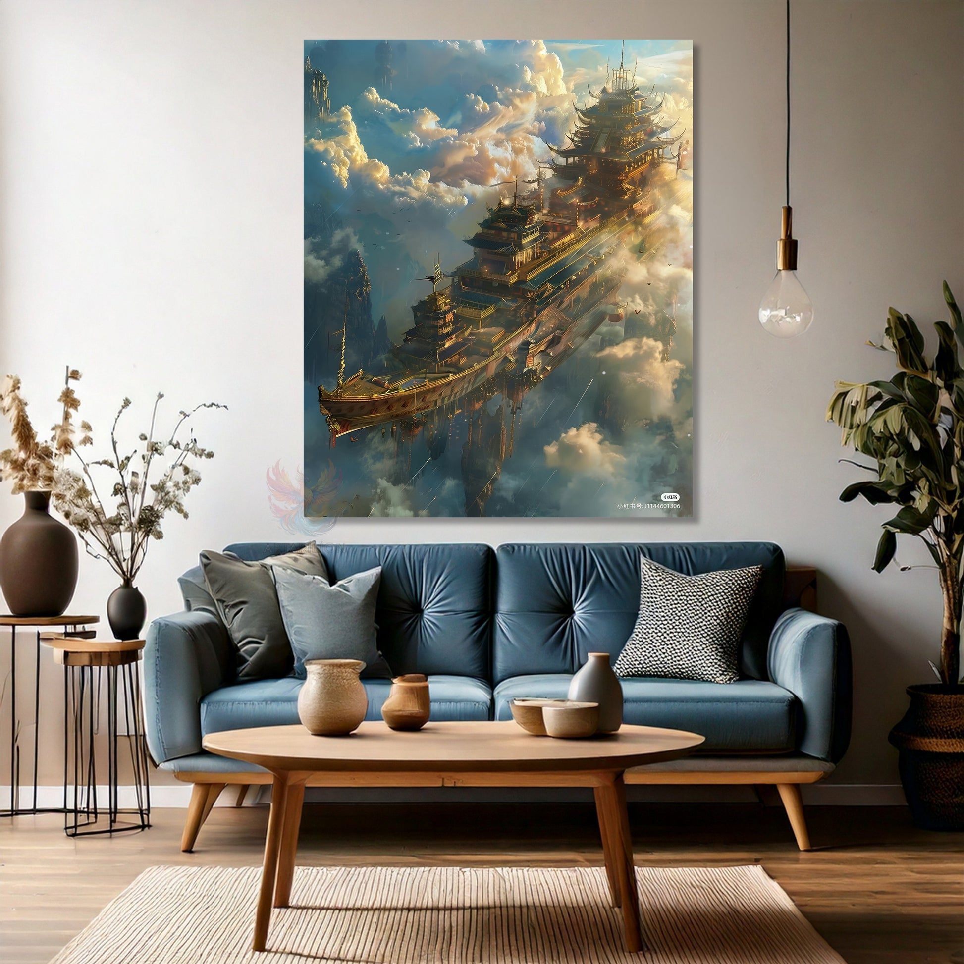 Kanvas Dikey Duvar Tablosu Kanvas Uçan Saray Gemi Ev Ofis Salon Modern Duvar Tablosu