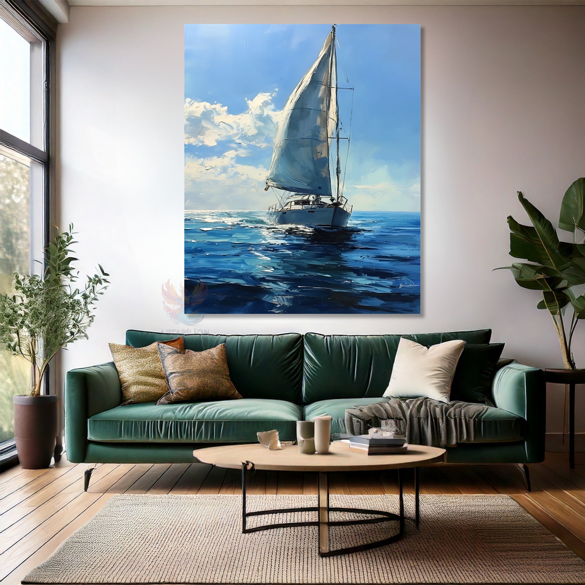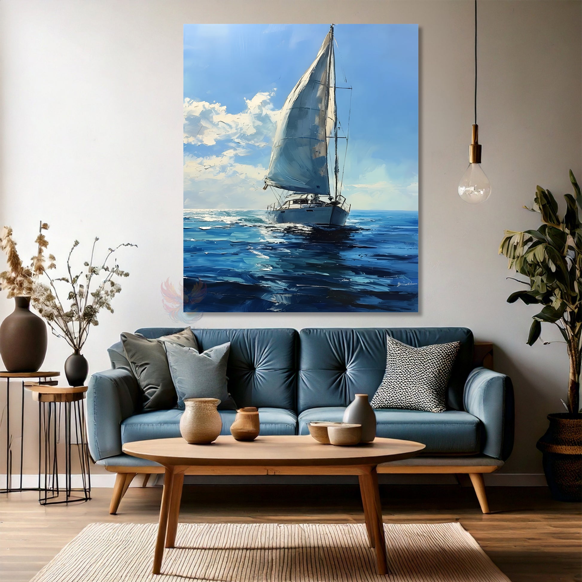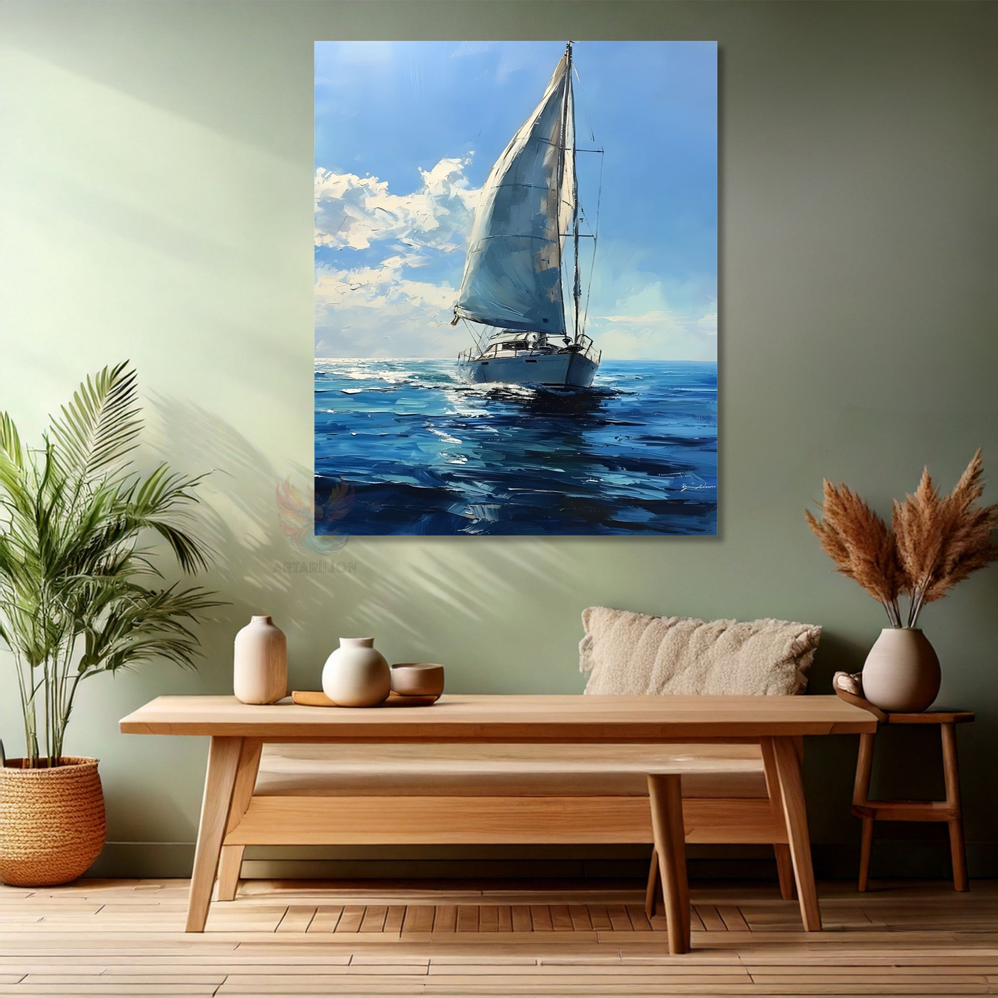 Kanvas Dikey Duvar Tablosu Kanvas Yağlıboya Görünümlü Yelkenli Ev Ofis Salon Modern Duvar Tablosu