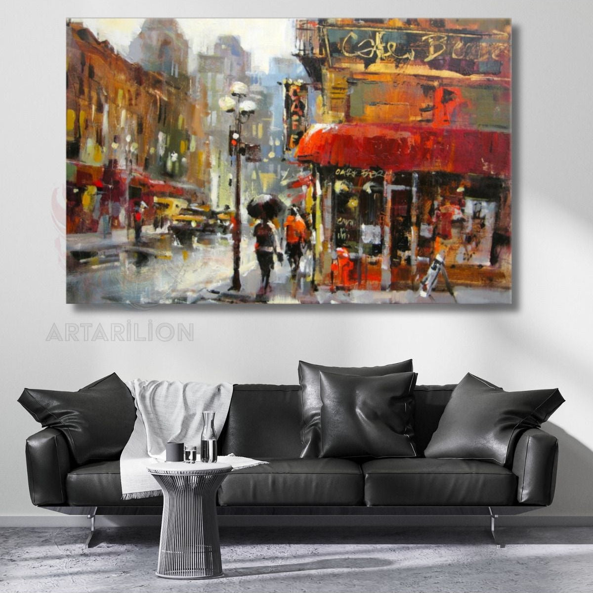 Kanvas Yağlı Boya Görünümlü Cadde Manzarası Kanvas Salon Tablosu Yeni Ev Hediyesi