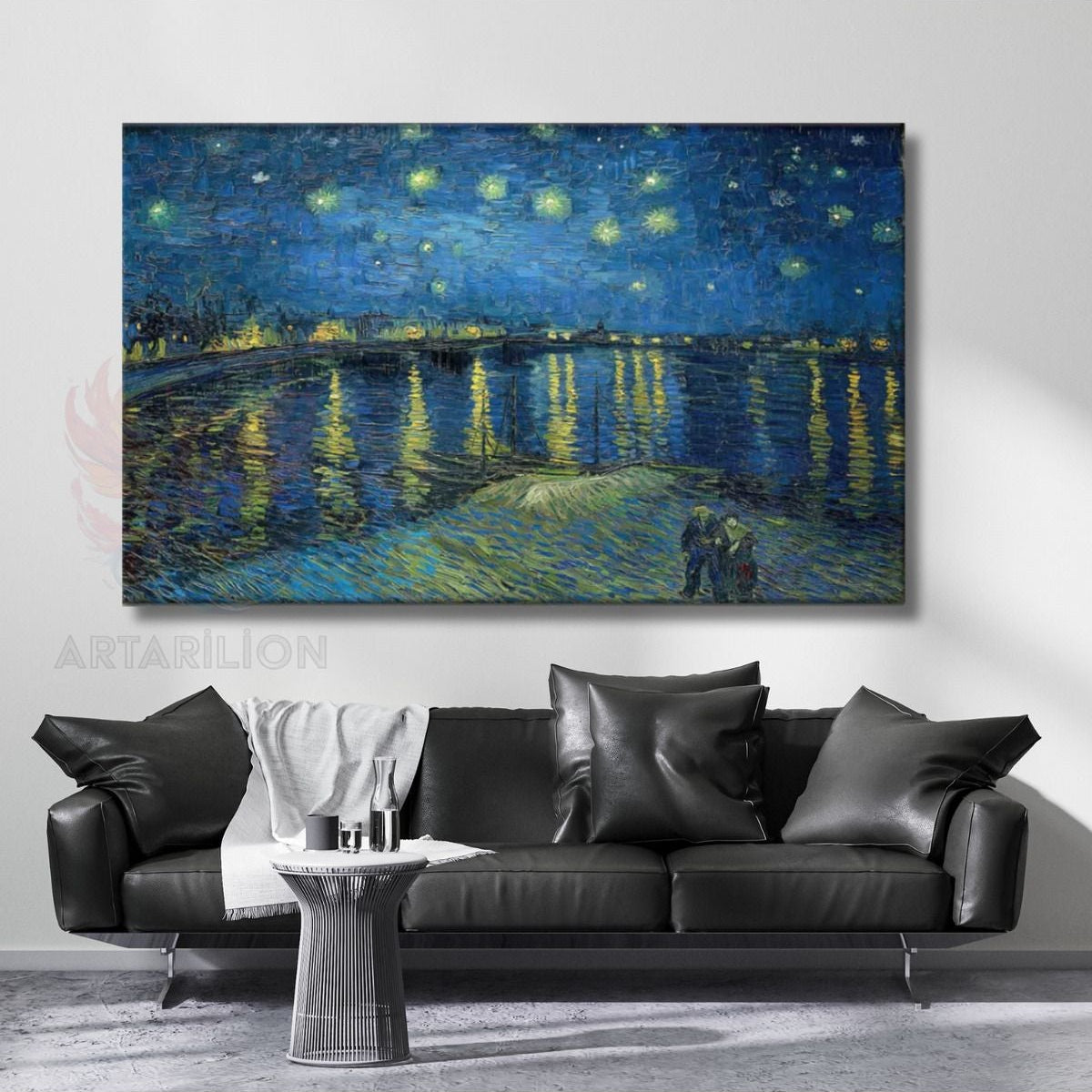 Ren Nehri’nde Yıldızlı Bir Gece Kanvas Tablo Dijital Baskı Klasik Tablo