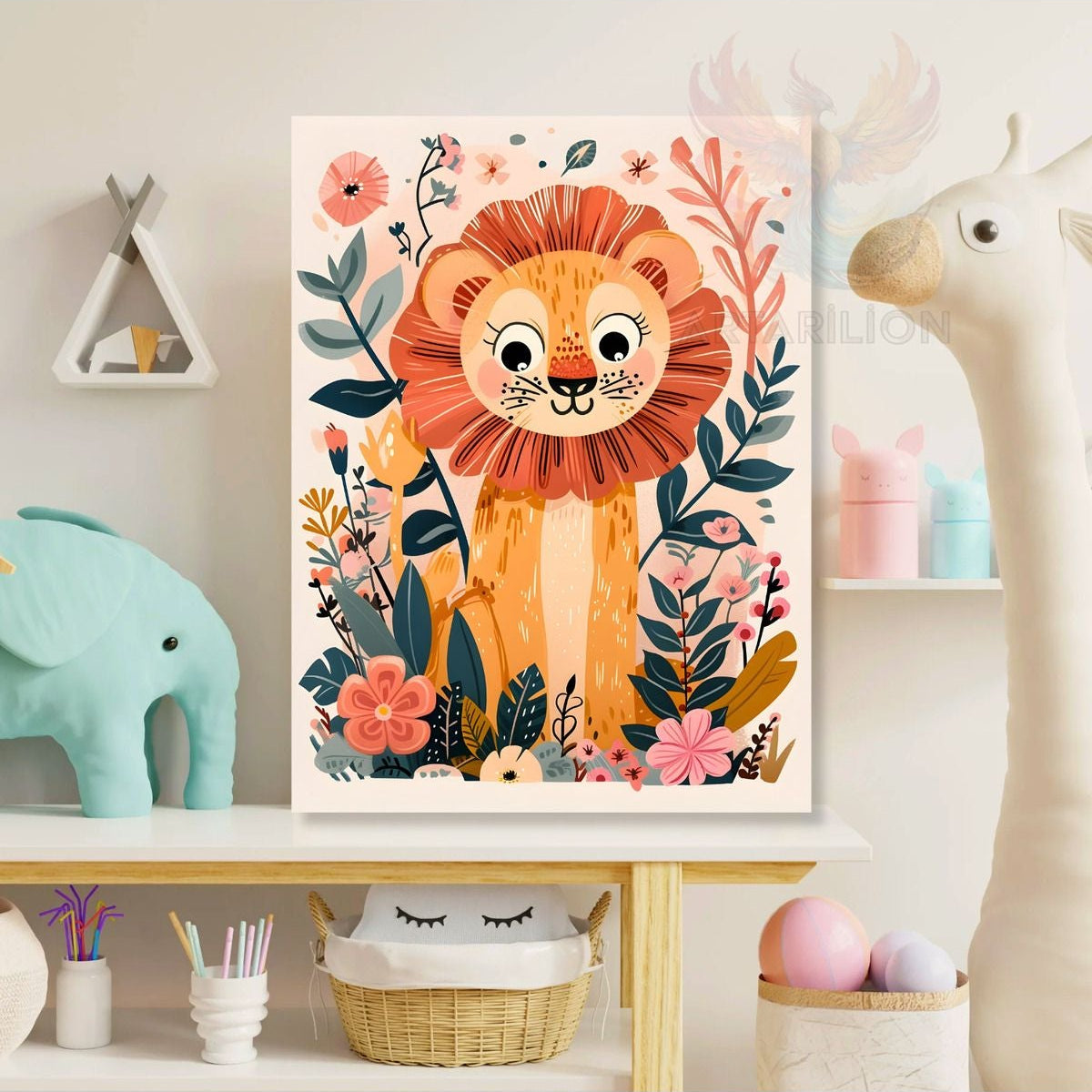 Kanvas Yavru Aslan Desenli Baskı Tablo Oyun Odası Tablosu Çocuk Odası Tablosu