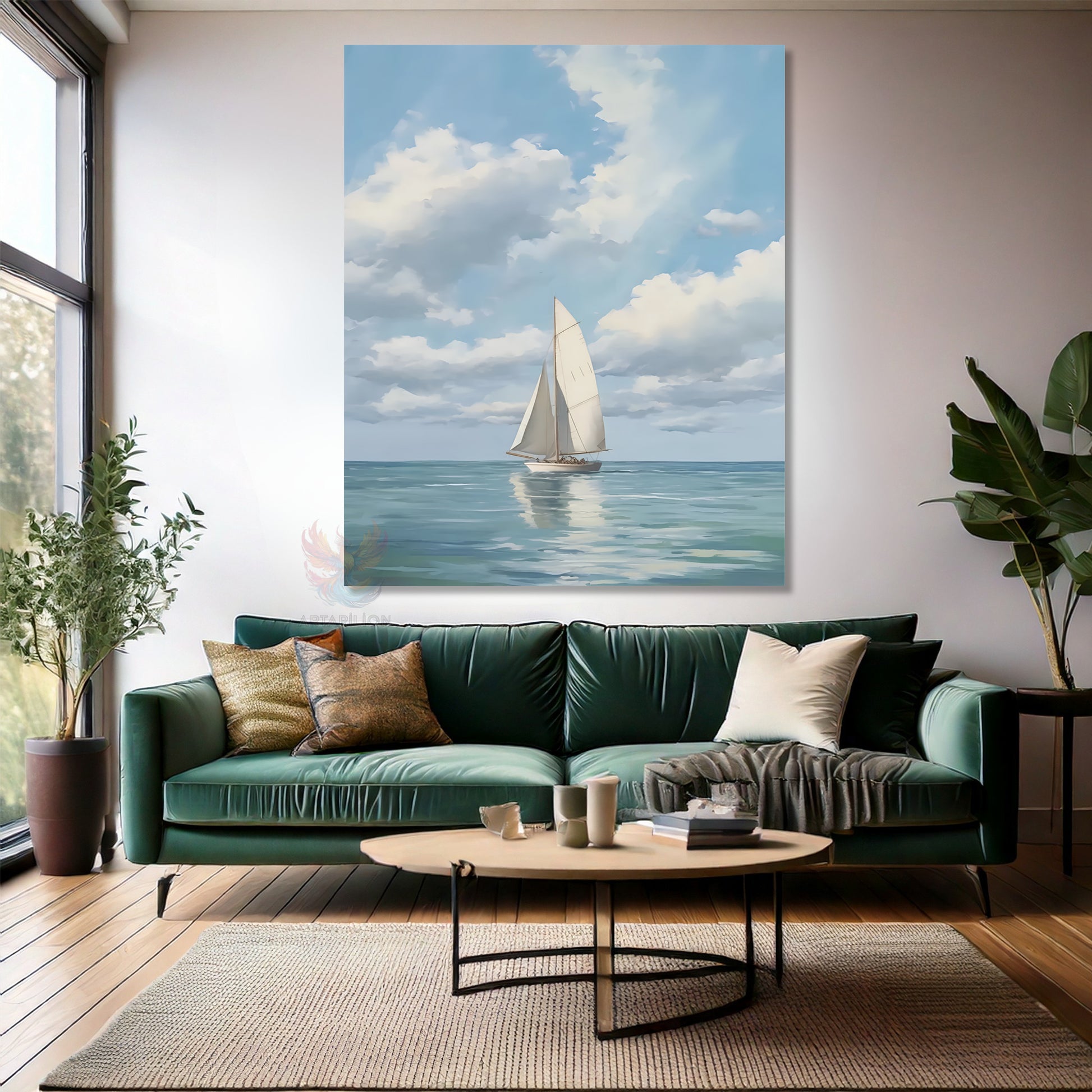 Kanvas Dikey Duvar Tablosu Kanvas Yelkenli Durgun Gemi Ev Ofis Salon Modern Duvar Tablosu
