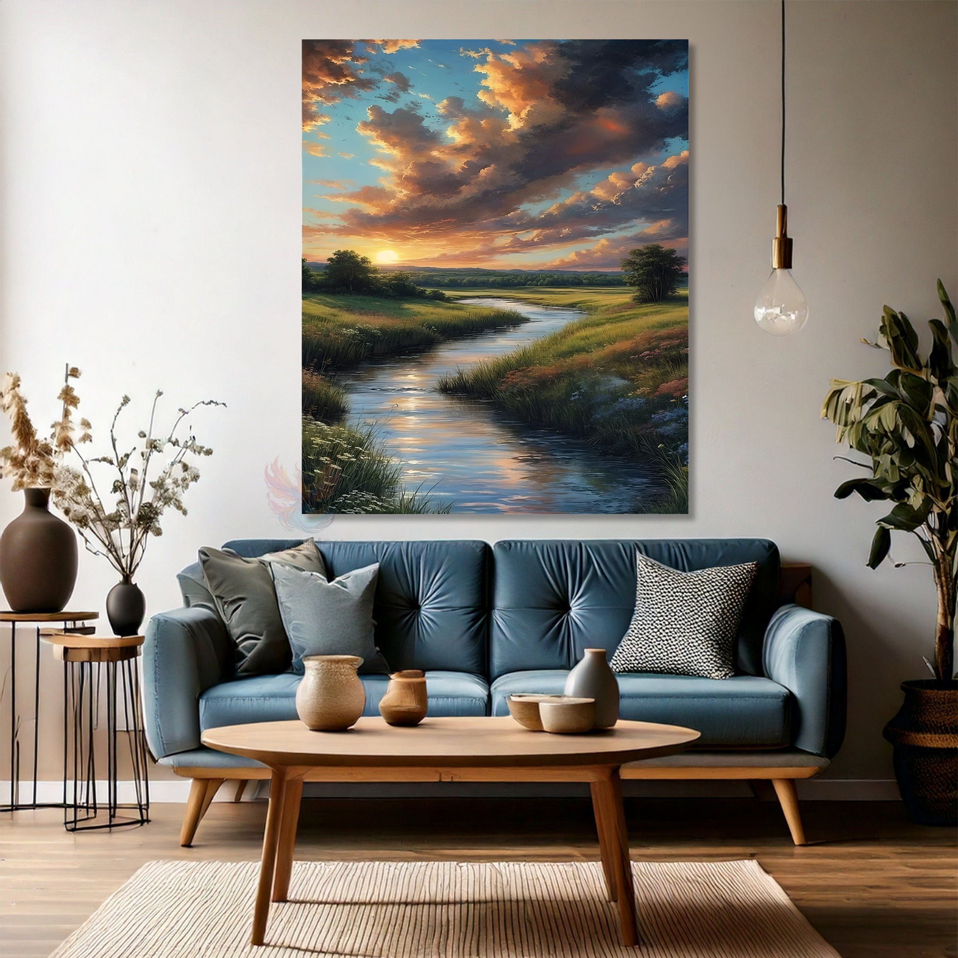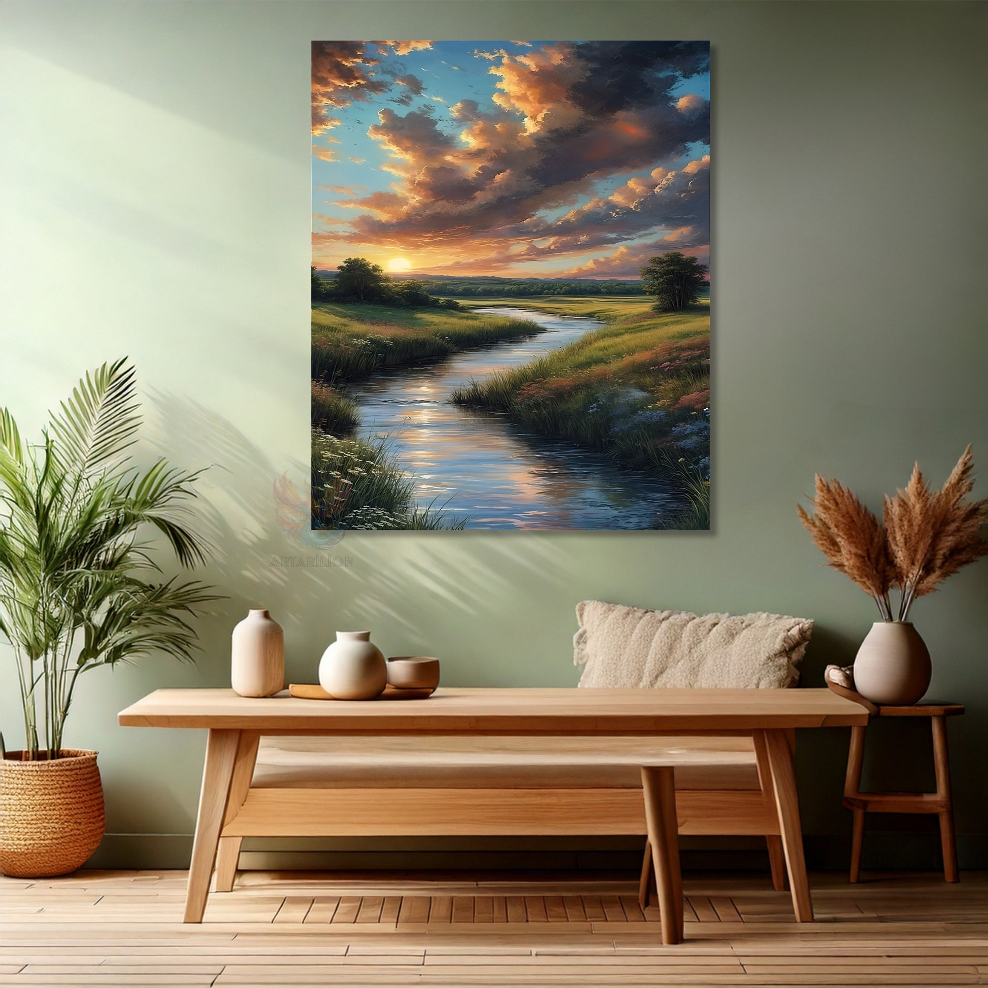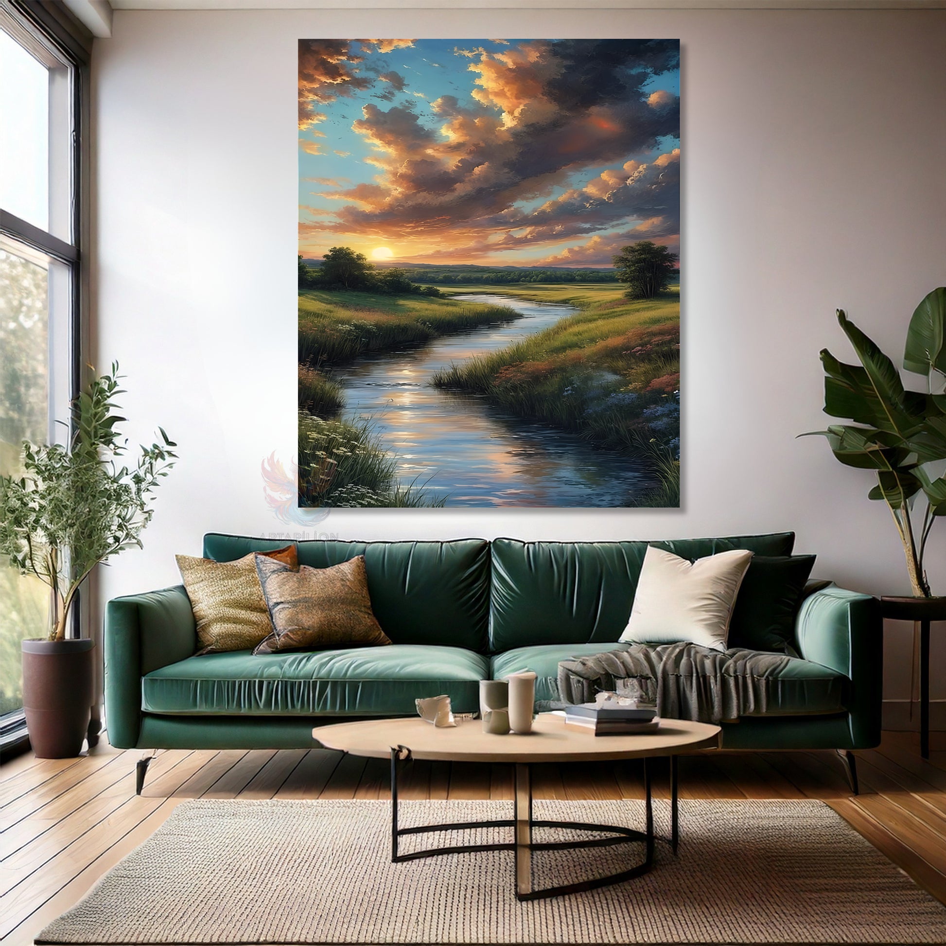 Kanvas Dikey Duvar Tablosu Kanvas Yeşillikler ve Nehir Ev Ofis Salon Modern Duvar Tablosu