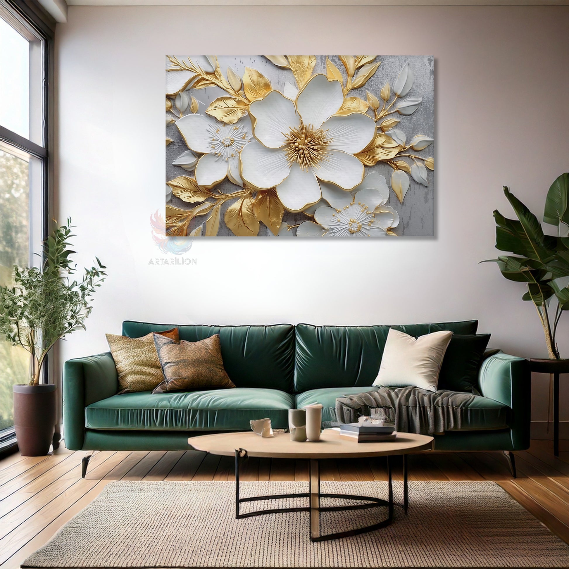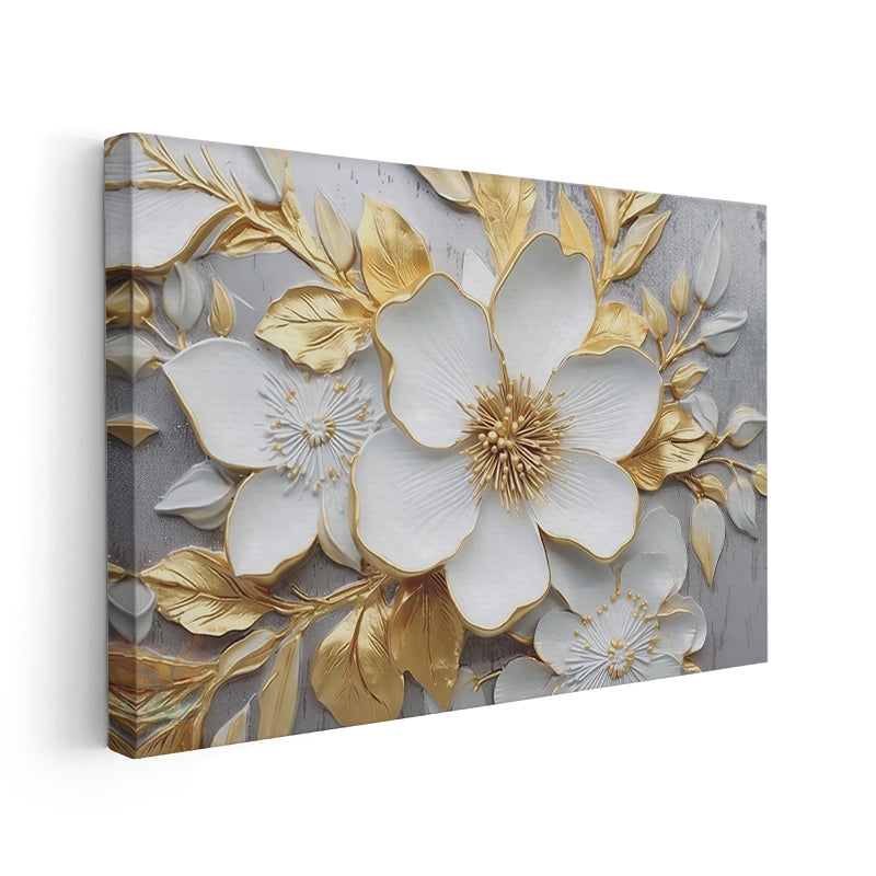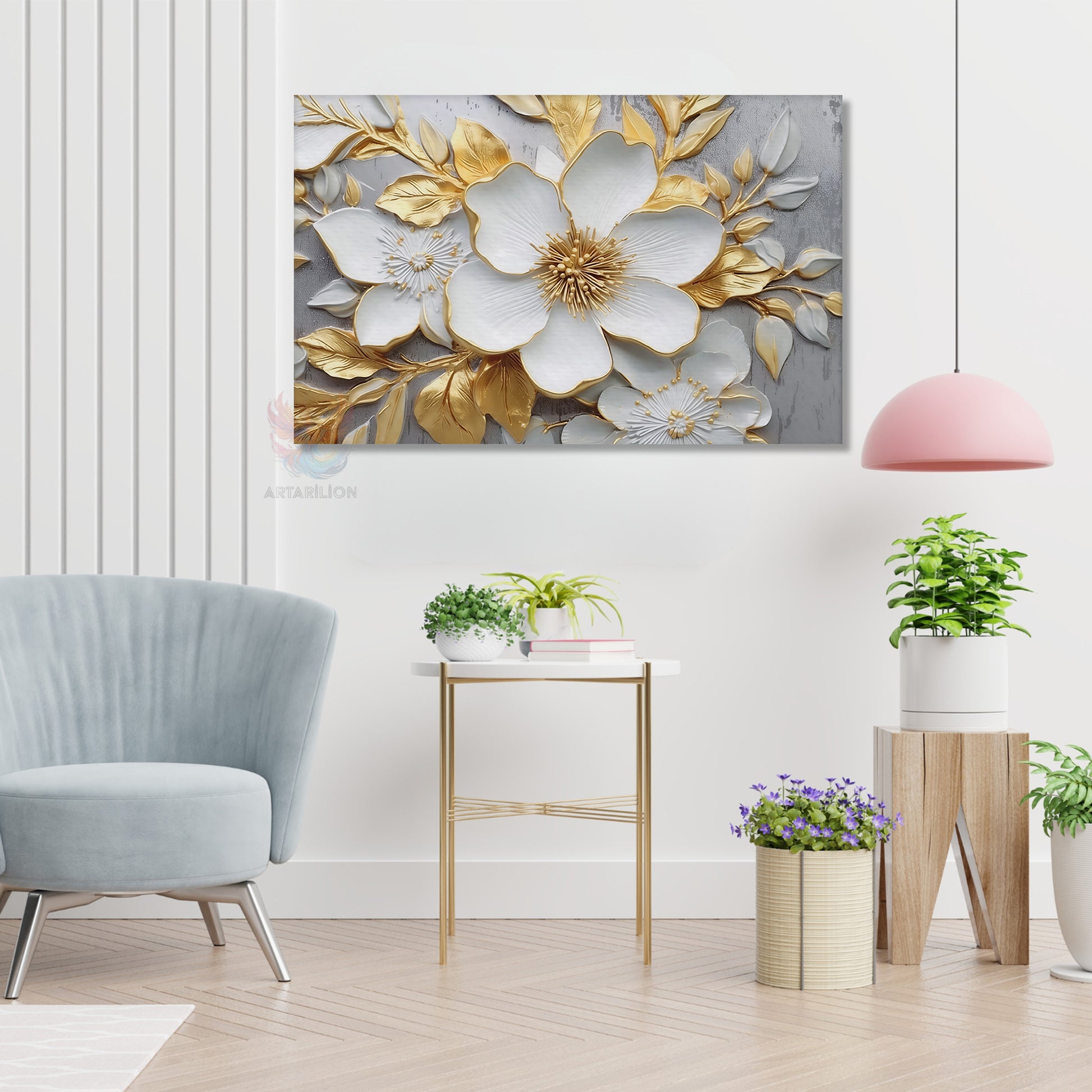 Kanvas Tablo Yüksek Kaliteli Kanvas Duvar Tablosu Beyaz Altın Çiçek Yeni Ev Hediyesi Ev Dekorasyon
