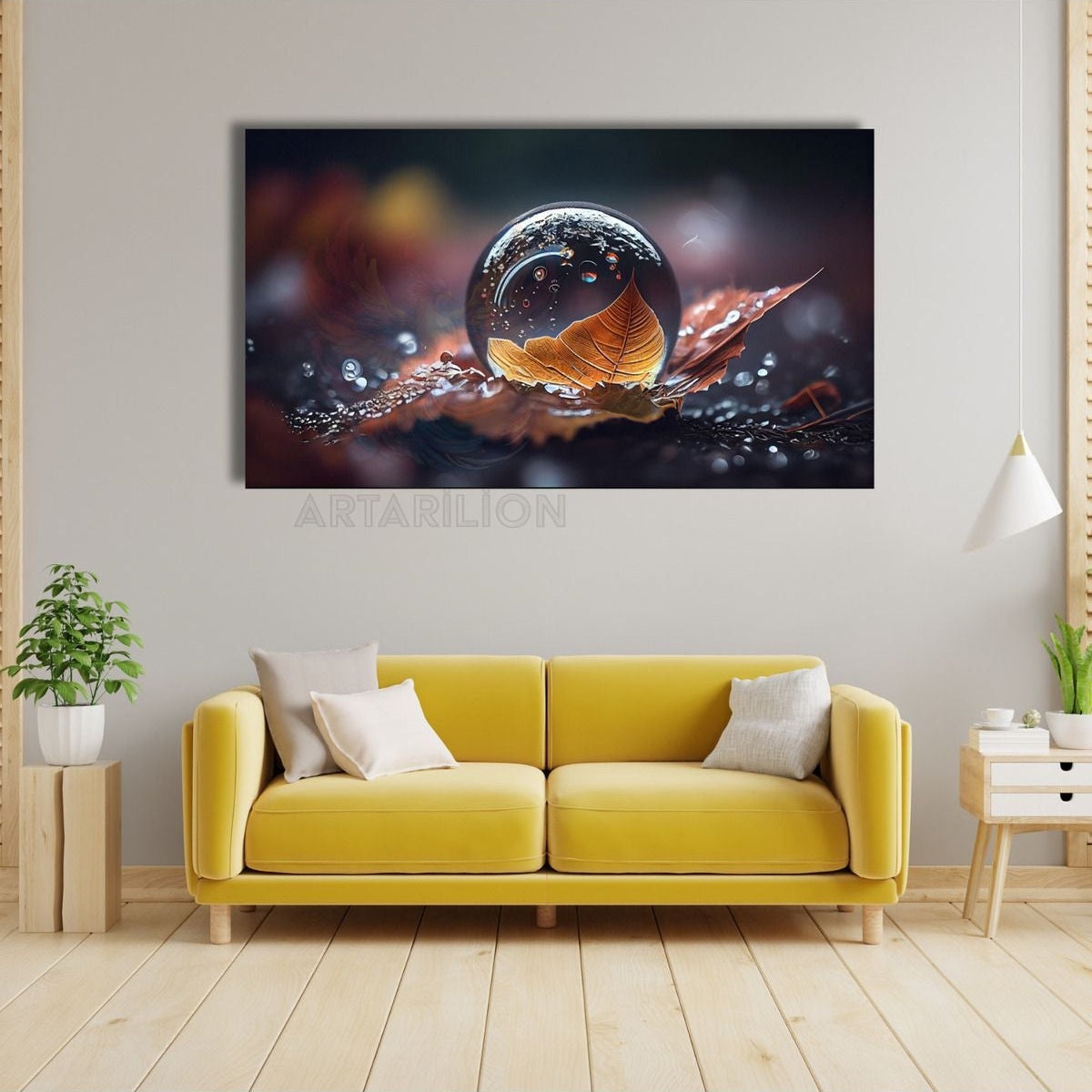 Yaprağın Üstündeki Su Damlası Özel Tasarım Kanvas Tablo Salon Tablosu Ev Dekorasyonu