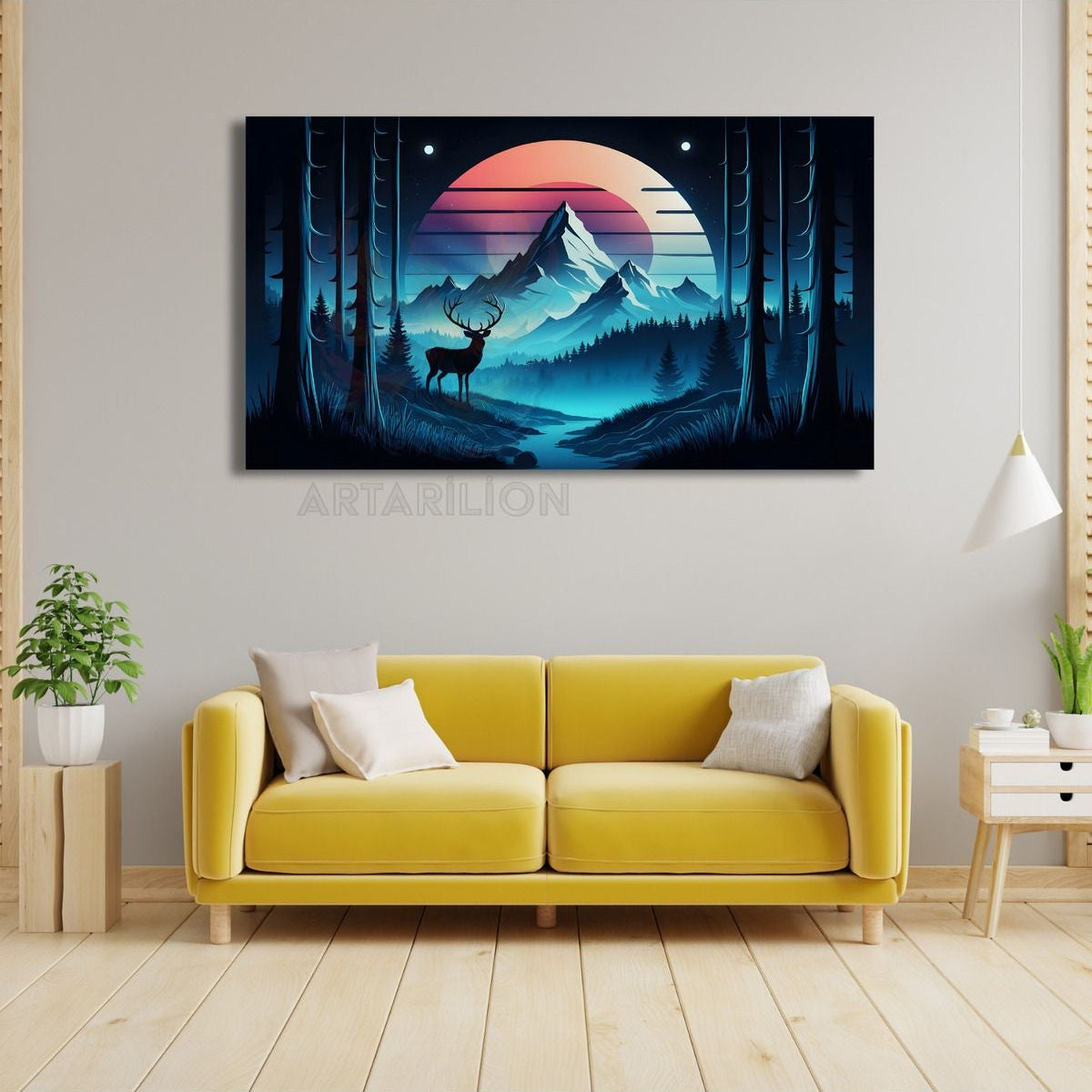 Dağ ve Geyik Görseli Kanvas Tablo Salon Tablosu HD Dijital Baskı Tablo