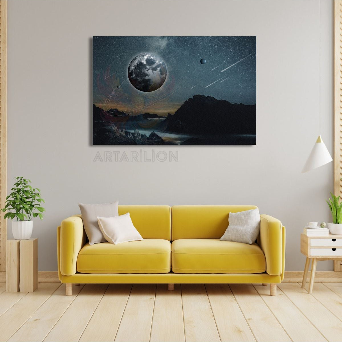 Gezegenler ve Meteor Manzarası Kanvas Duvar Tablosu Salon Tablosu Dijital Baskı Kanvas Duvar Dekoru