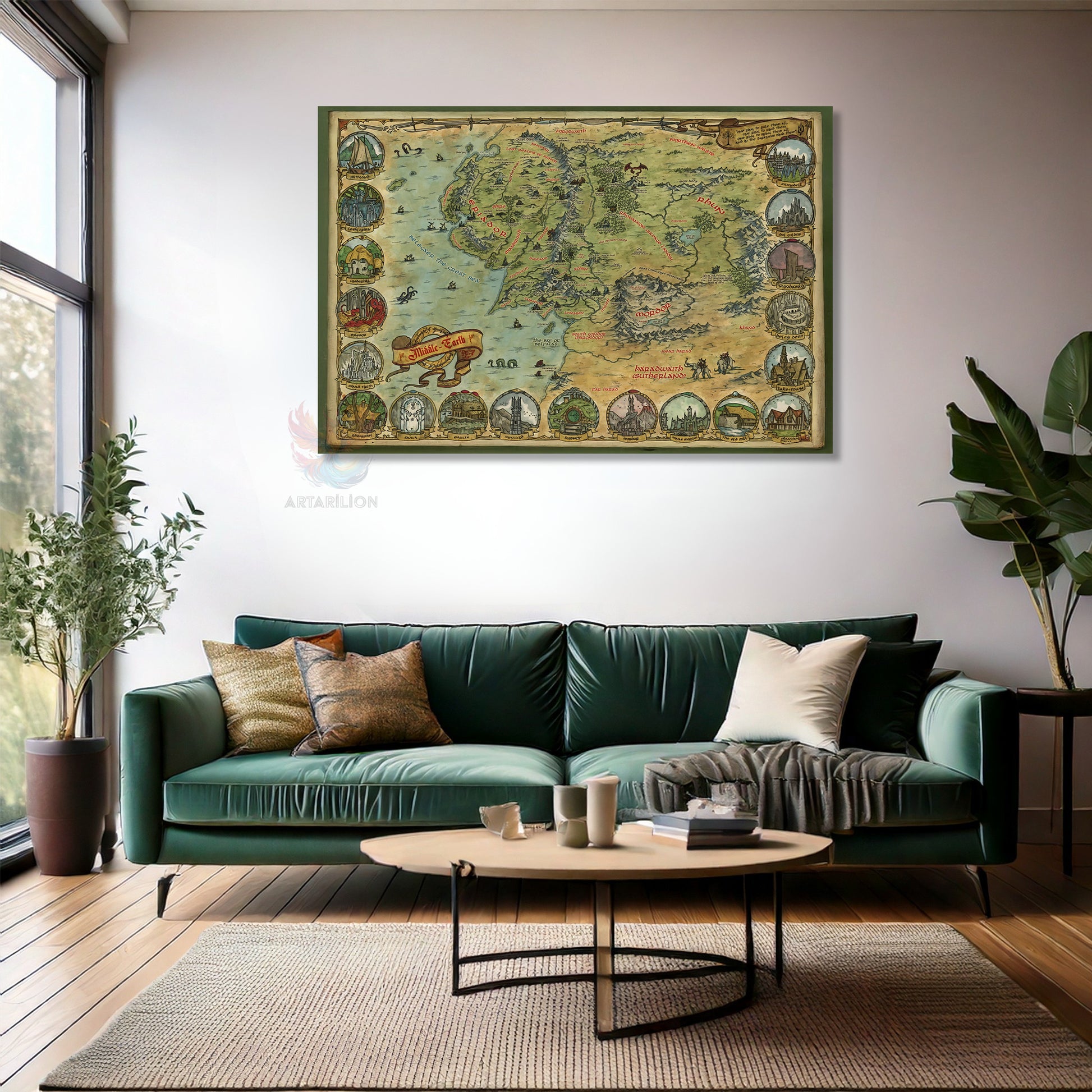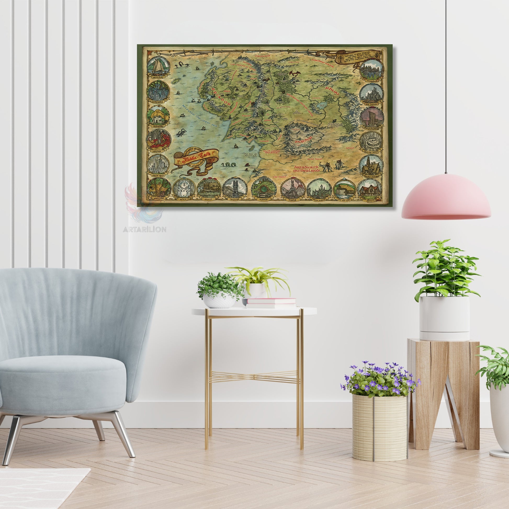 Kanvas Tablo Yüksek Kaliteli Kanvas Duvar Tablosu Middle Earth Haritası Ev Dekorasyon