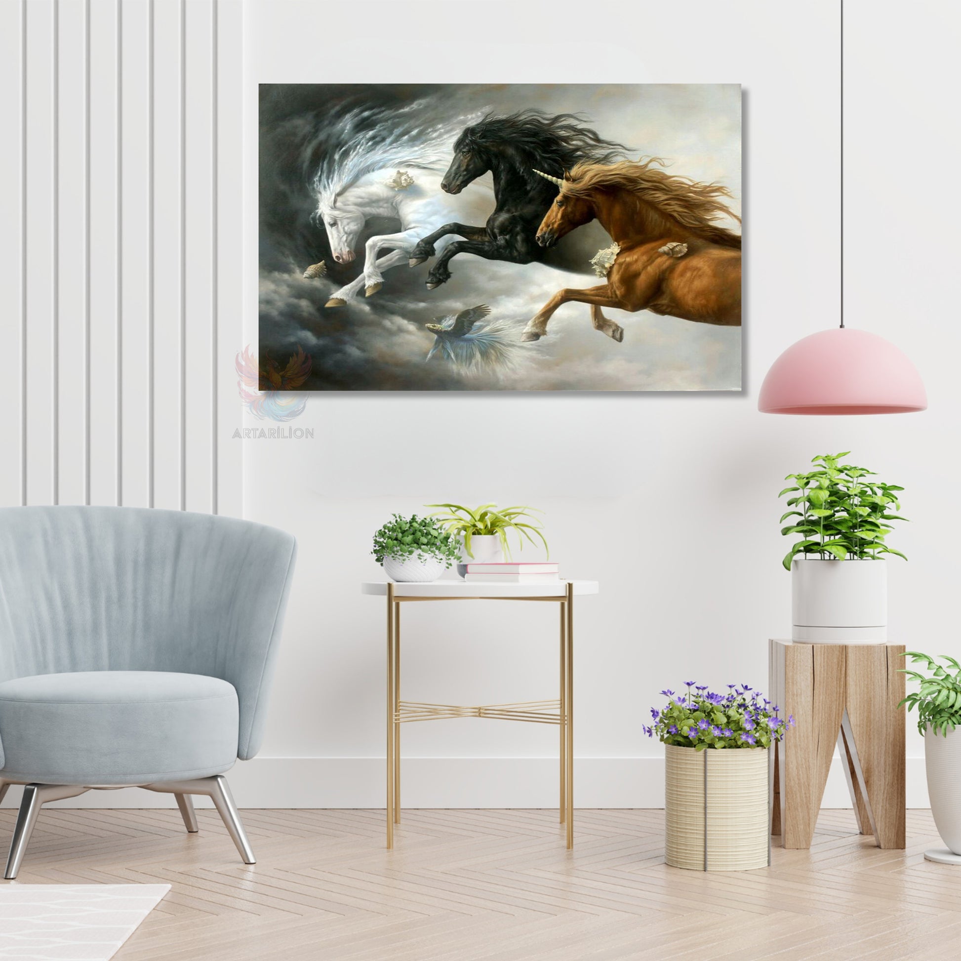 Kanvas Tablo Yüksek Kaliteli Kanvas Duvar Tablosu Mistik Atlar Yeni Ev Hediyesi Ev Dekorasyon