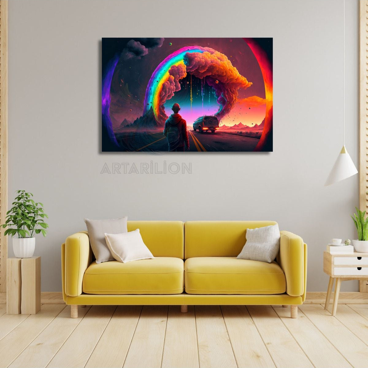 Neon Renkler ve Karadelik Görseli Kanvas Tablo Yeni Ev Hediyesi Salon Tablosu