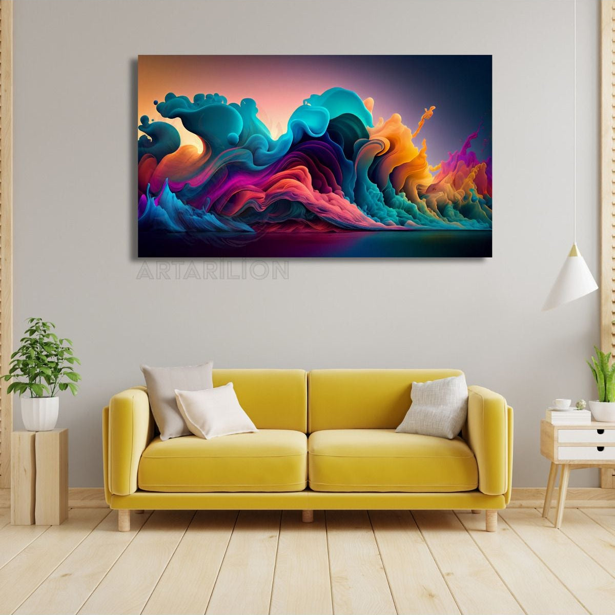 Kanvas Tablo Soyut Neon Renkli Duman Görseli Oturma Odası Tablo Modeli Oyuncu Odası Dekoru