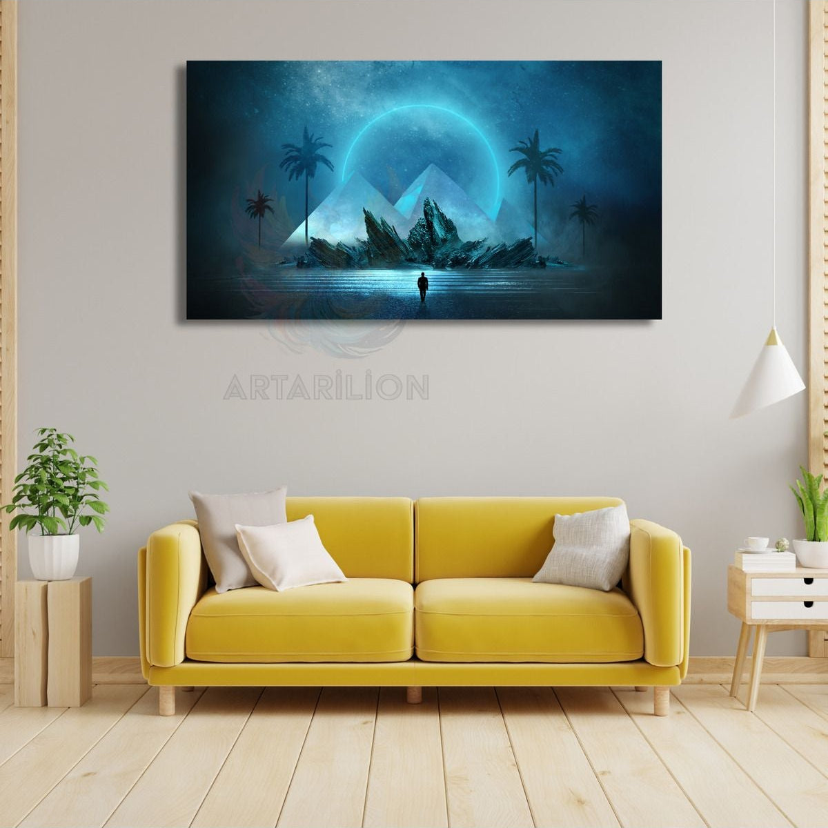 Kanvas Tablo Dijital Baskı Ay Işığı ve Piramit Manzara Soyut Tablo
