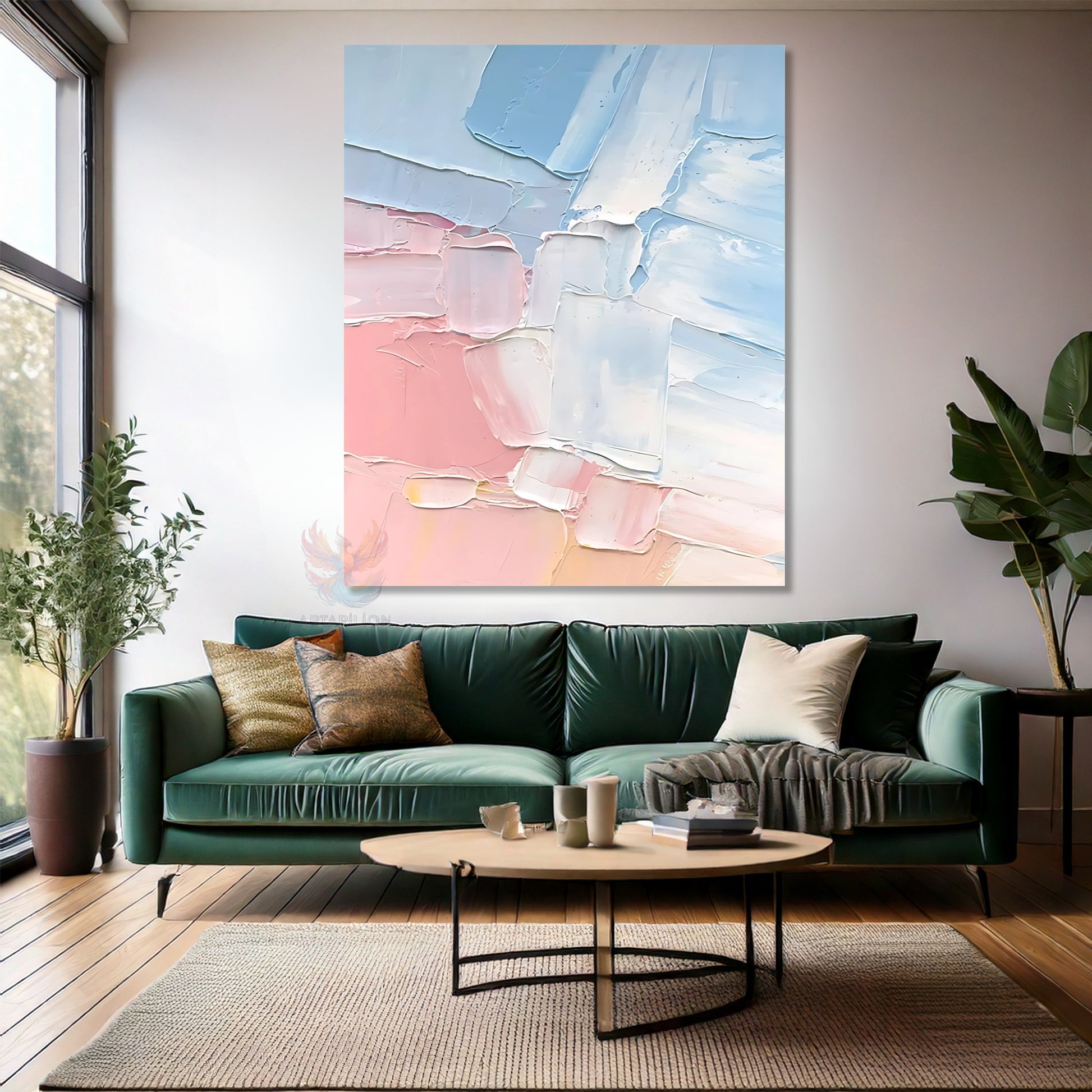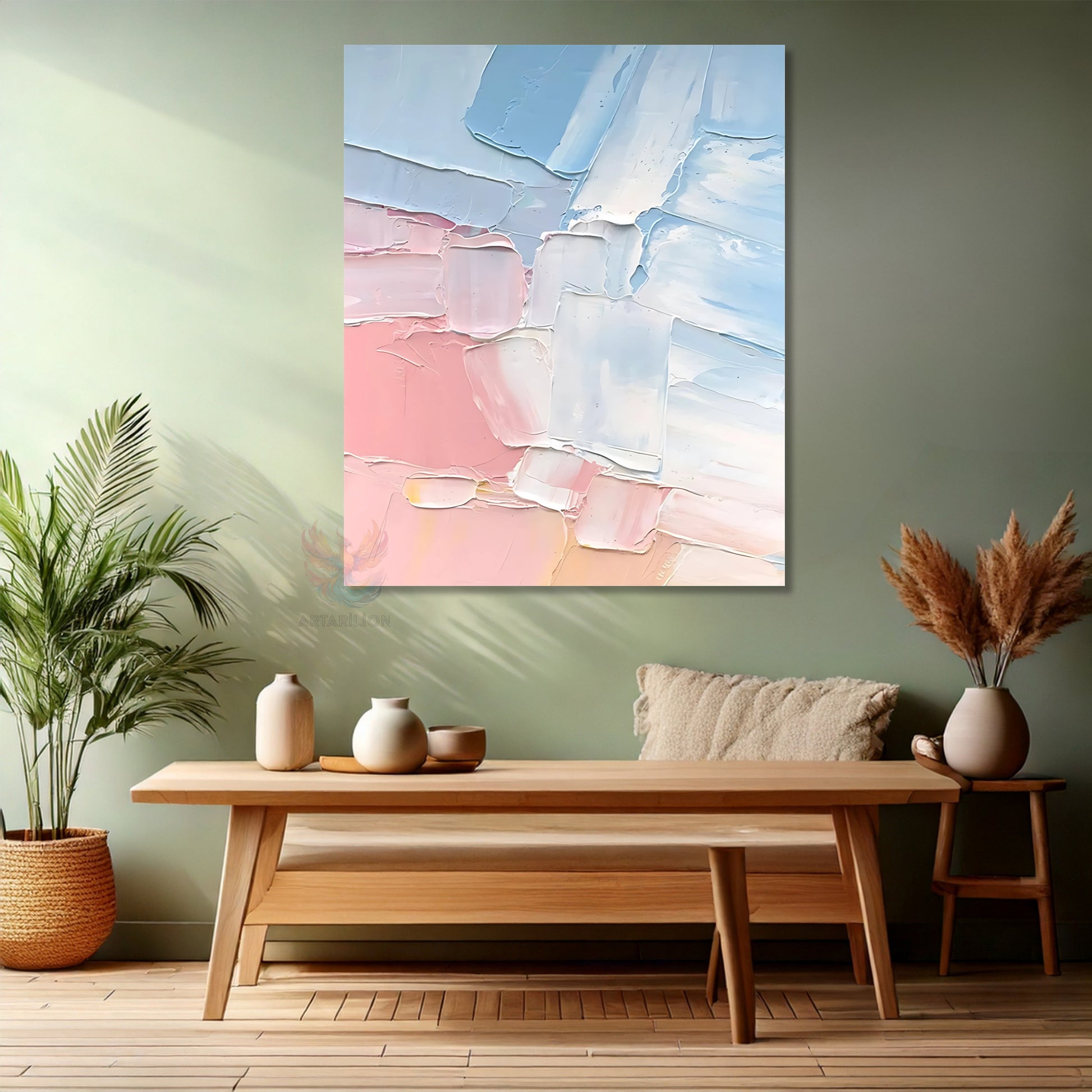 Kanvas Duvar Tablosu Pembe ve Mavi Sade Tasarım Kanvas Baskı Tablo Modern Tasarım Salon Tablosu