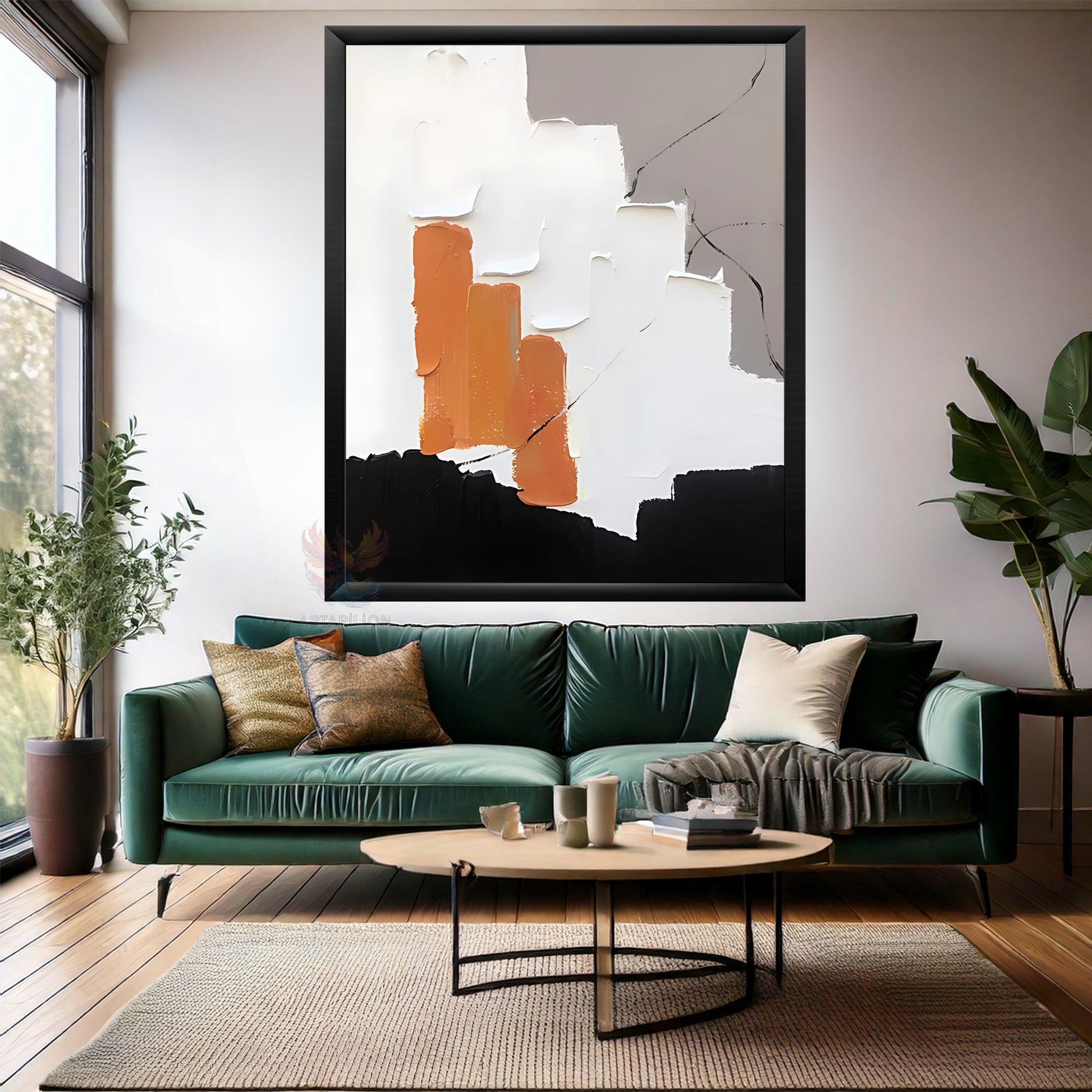 Yağlı Boya Görünümlü Soyut Ahşap Çerçeveli MDF Tablo Fırça Darbeleri Modern Salon Duvar Tablosu