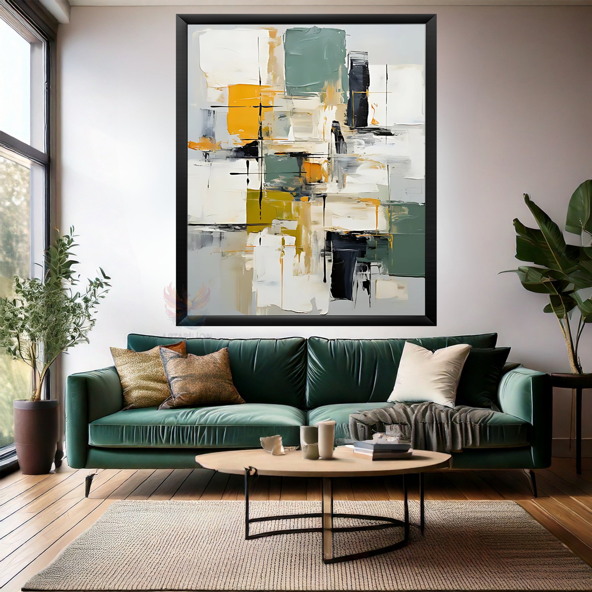 Yağlı Boya Görünümlü Soyut Ahşap Çerçeveli MDF Tablo Sade Şık Modern Oturma Odası Duvar Tablosu