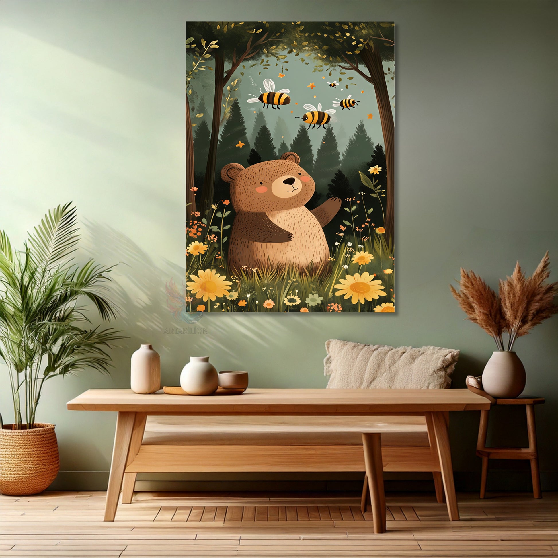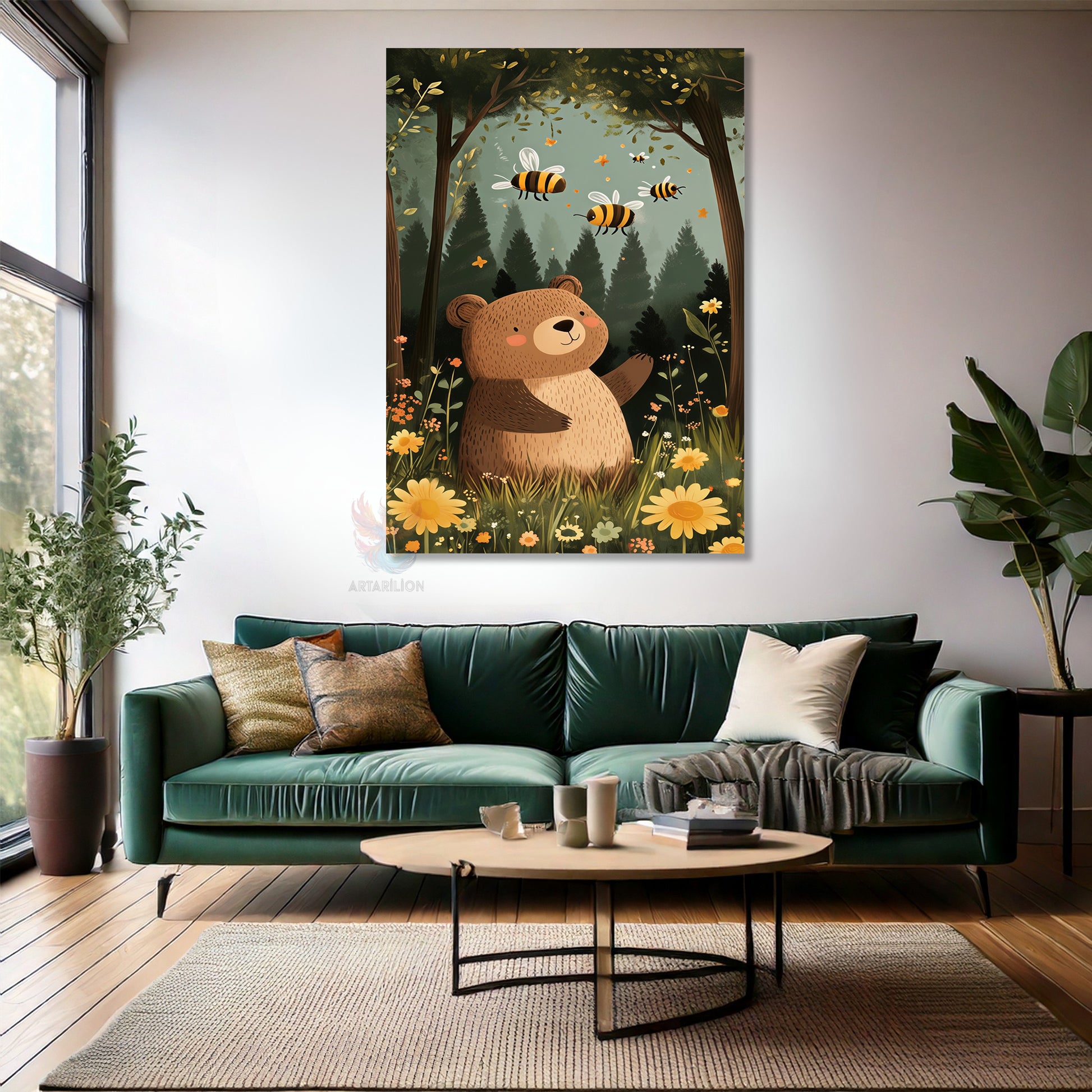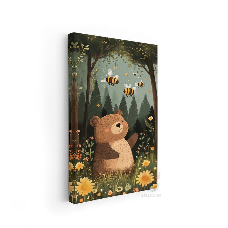 Kanvas Tablo Ev Ofis Duvar Tablosu Sevimli Ayı ve Arı Yeni Ev Hediyesi Kanvas Ev Dekoru