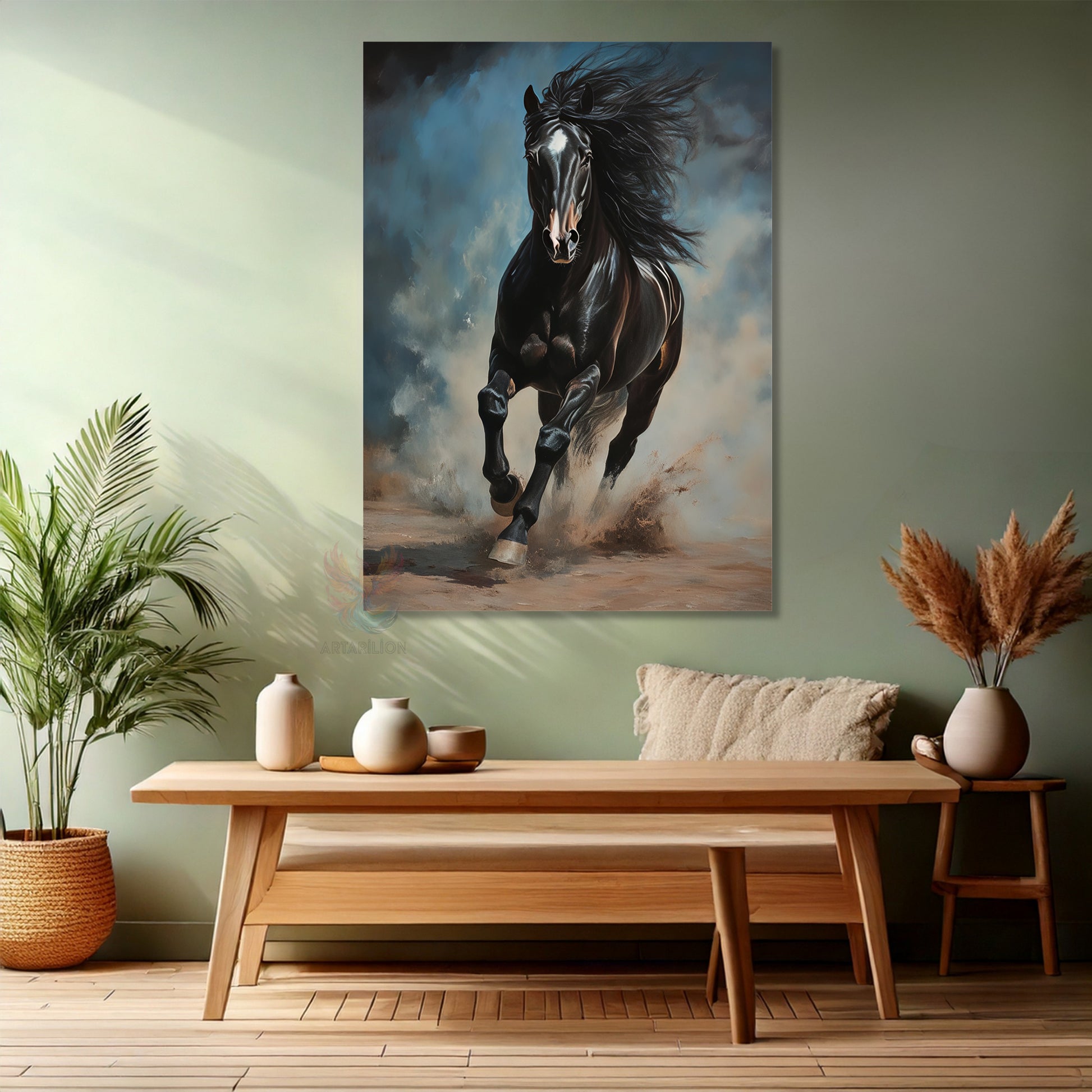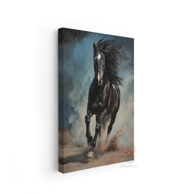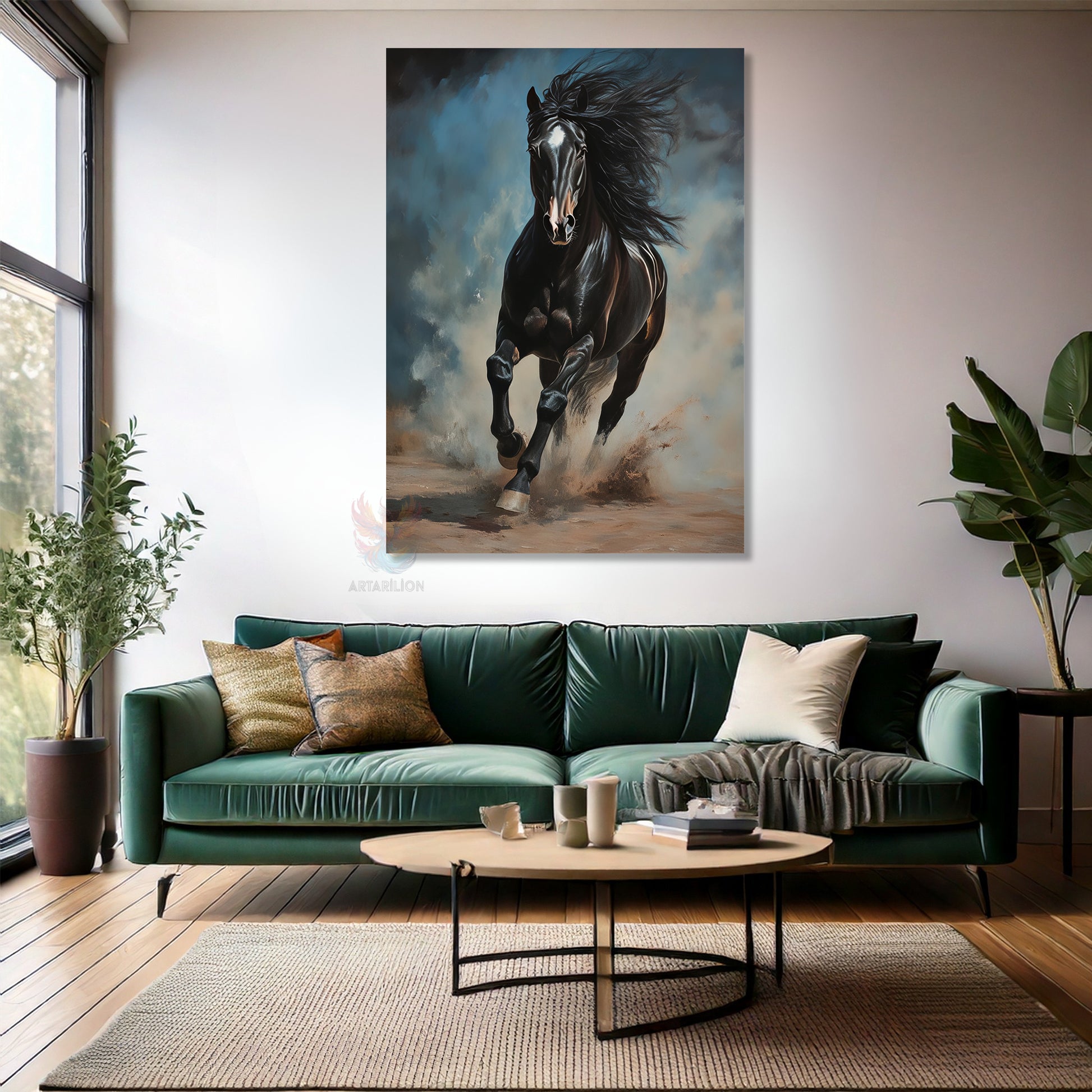 Kanvas Tablo Ev Ofis Duvar Tablosu Siyah Koşan At Yeni Ev Hediyesi Kanvas Ev Dekoru